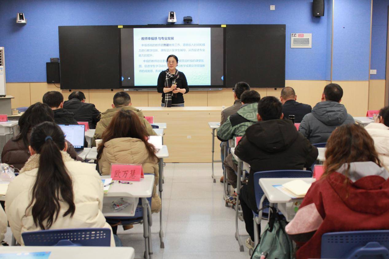 南京师范大学教师教育学院教授、心理学博士邱莉带来《提升教师幸福感,促进教师专业发展》的专题培训。邱莉教授从心理学角度剖析了职业倦怠的成因与危害,指出幸福感高的教师更具亲和力与教育动力。她鼓励教师学会积极归因,化解压力源,在提升职业幸福感中实现专业成长,进而激发学生的学习动力。