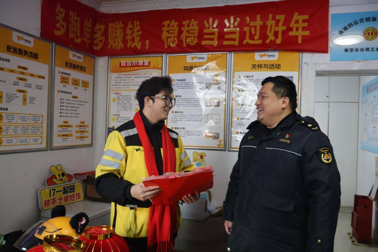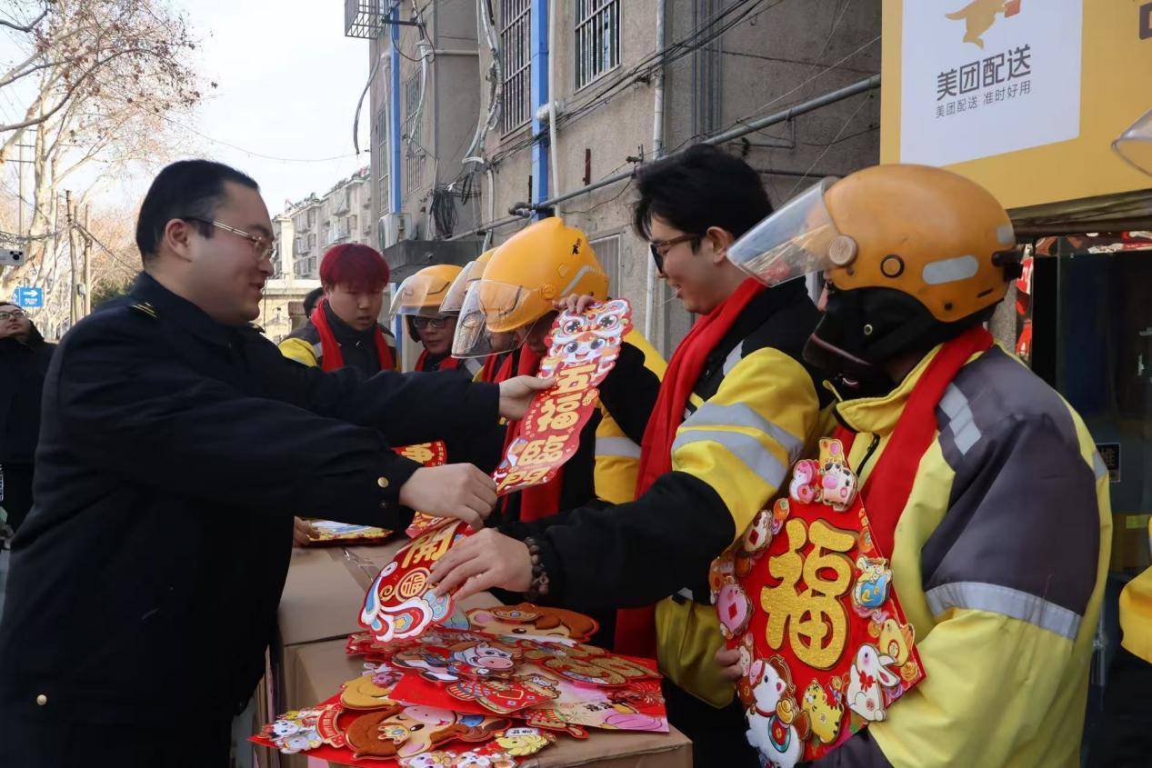 “立春启新程,跑单多保重!”“这副春联送你,愿春日顺遂、新年安康!”2月4日立春时节,南京江北新区“关爱外卖骑手传递冬季温暖”系列活动走进美团大厂站点,数十名外卖骑手代表齐聚一堂,在辞旧迎新的喜庆氛围中,收获了来自新区的春日关怀与新春祝福。此次活动由江北新区市场监管局联合新区党群工作部共同举办,以立春为契机致敬城市“奔跑者”,让融融春意与城市温情相伴同行。