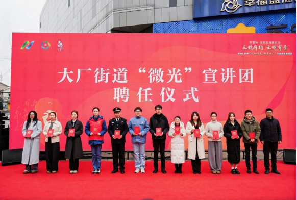 春风拂过金陵北岸,文明的暖流在街巷间静静涌动。近日,江北新区“三载同行文明有吾”暨大厂街道“凡人微光照亮大厂”学雷锋志愿服务活动在长冲步行街举行。这场春日里的文明之约,不仅是“文明有吾”品牌三年来扎根基层的实践成果展示,更是一次生动的注脚——在大厂,文明实践正在从“单向输出”走向“双向奔赴”,“两新”群体与企业从参与者成长为共建者,无数普通人的善意在日常中静静流淌,汇聚成照亮街巷的温暖光芒。