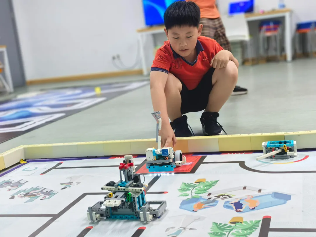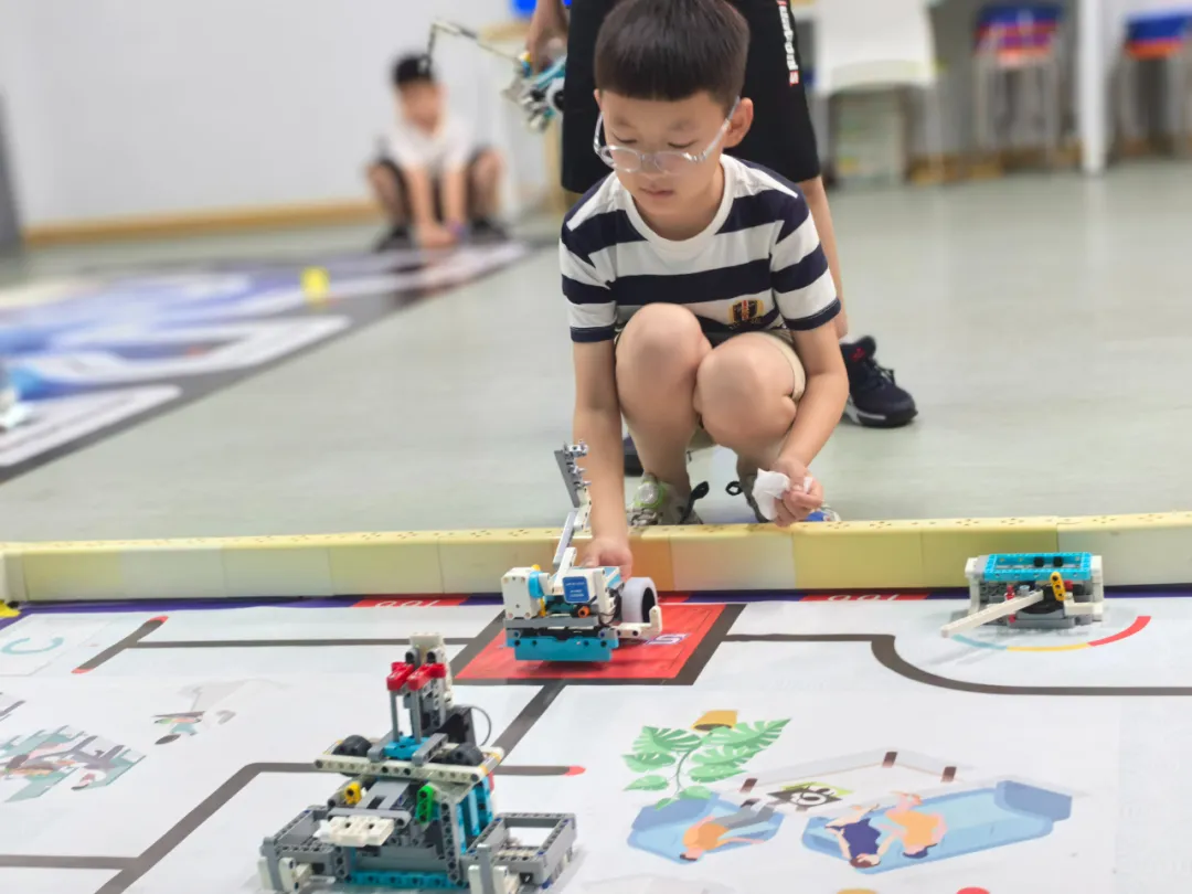 今年NOC大赛的比赛项目主要分为四大赛道:机器人赛道、设计赛道、人工智能赛道、编程赛道。本次武实小参加的是机器人赛道中的智能餐饮机器人项目。比赛要求选手设计并搭建智能餐饮机器人,并通过现场编程完成赛场的随机任务,每个任务对应不同的分数。机器人结构搭建是否合理,直接影响到行驶的速度与精度,还要综合考虑机械臂能否完成任务、程序是否正确等各方面因素。选手需要现场调试比赛程序、排除各种故障,根据现场随机任务,采取不同的策略不断优化方案,确保在最短的时间内完成比赛,取得高分。