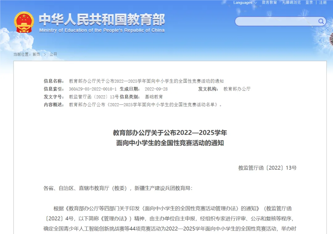 据悉,全国中小学信息技术创新与实践大赛(简称NOC大赛)已经连续五年入选教育部办公厅印发的“白名单”,成为教育部批准的可面向中小学生开展的全国性竞赛大赛之一。NOC大赛自2002年启动以来,每年举办一届,始终坚决贯彻党的教育方针,遵循教育教学规律和青少年成长规律,注重全面提升学生信息素养,体现发展素质教育要求,受到广大师生的欢迎和积极参与。
