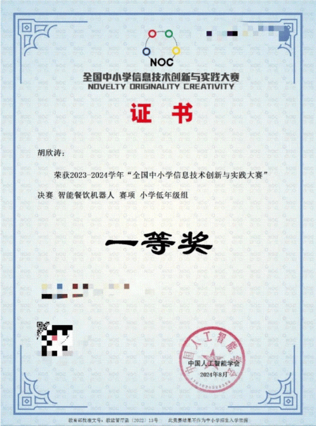 2023-2024全国中小学信息技术创新与实践大赛(NOC)全国总决赛于7月26-28日在山东济南举行,常州市武进区实验小学人工智能社团三名选手经过前期江苏省选拔赛及决赛前备赛集训,在全国总决赛的璀璨舞台上,面对来自五湖四海的1.5万名精英选手,参赛学生们不负众望,用汗水铸就了辉煌,以才华点亮了梦想。