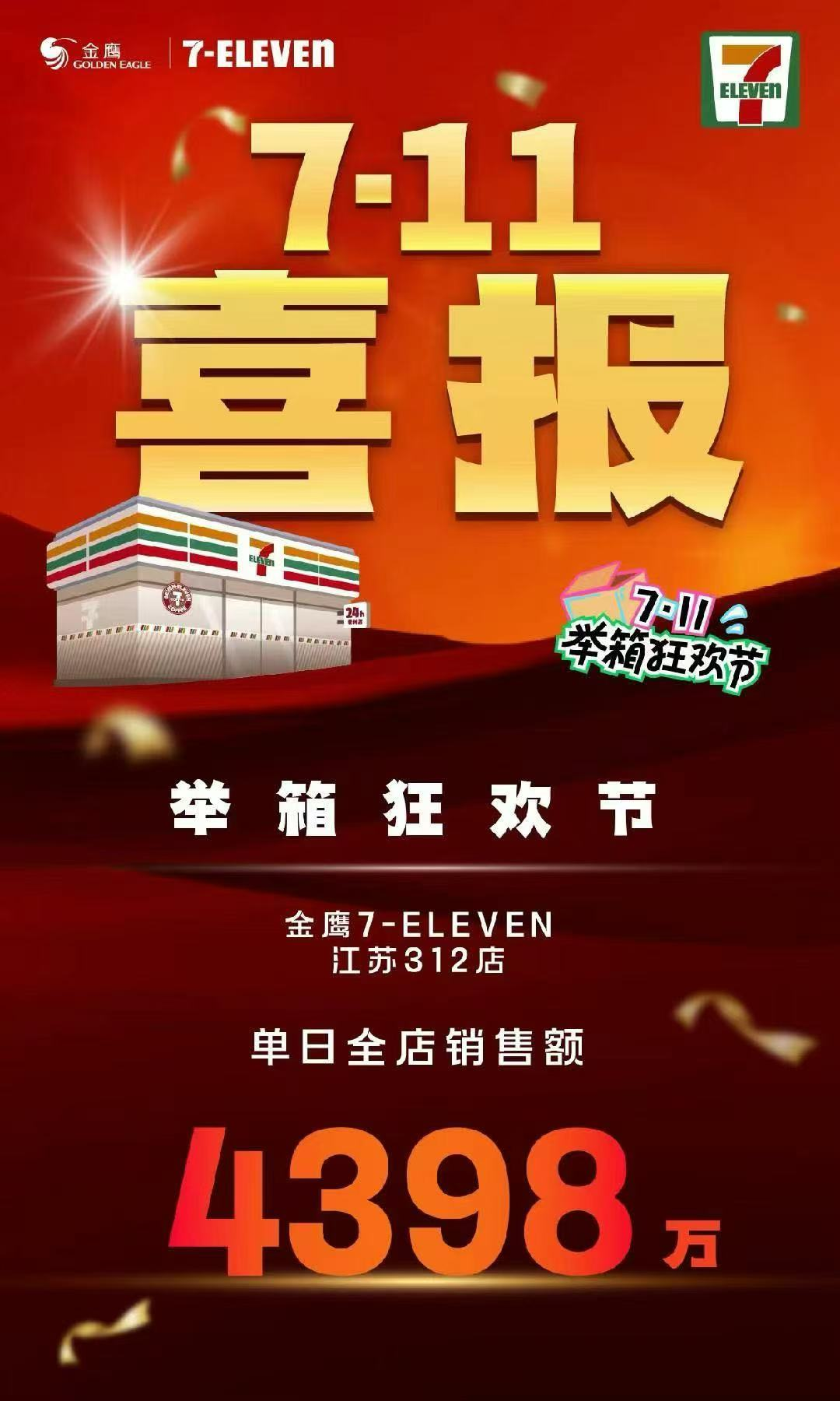 7月11日,一年一度的金鹰7-Eleven“举箱狂欢节”在江苏全域火热开启,全省13城300+门店联动发力,单日营业额4398万元,全店客流达45.9万人次,平均单店销售额达14万元,单店最高销售额达29万元,多项数据再创新高,以强劲势头点燃夏日消费热潮!
