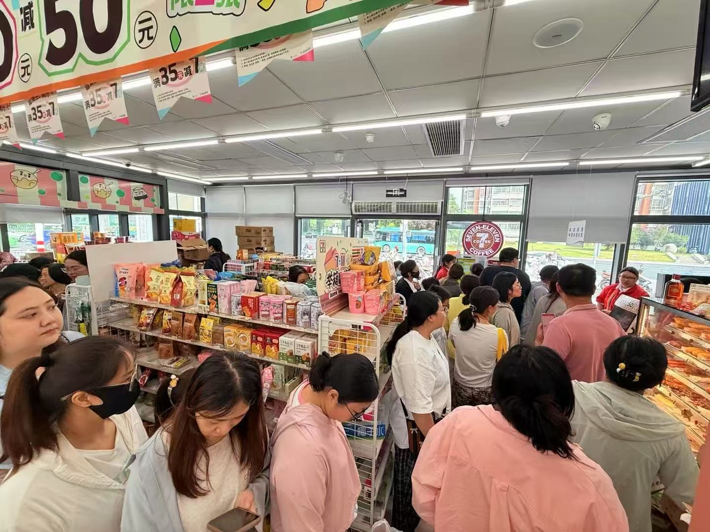 今年的7月11日,金鹰7-Eleven以“举箱狂欢”为主题开启年度宠粉盛典,活动当天,会员顾客进店消费满100元立减50元(每人限2笔),还可叠加“两件更划算”、“限时开心价”、“第二件半价”等多重惊喜优惠。各门店现场集结美味鲜食、生活用品、网红零食、夏季饮品等N+热门爆品,精准满足江苏省内消费者的夏日囤货需求。7月11日一早,江苏全省300+门店同步迎来抢购热潮,货架前人潮如织,冰饮区、鲜食档、零食等热门品类遭疯狂扫货,现场顾客纷纷排起长龙,不少顾客“整箱扫货”,积极打卡社交平台分享薅羊毛攻略,线上线下联动形成现象级消费热潮。