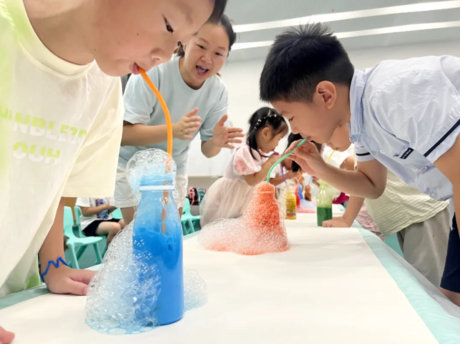 从7月7日到8月22日,整整七周,泰盈社区的暑托班“节目单”排得满满当当。谈及暑托班的运营模式,泰盈社区党总支副书记江岸介绍,暑托班采取“每周预约制”,家长得提前一周为孩子抢下周的课。目前,第一周所有课程全被约满,覆盖学员约300人次。“我们是社区自己办暑托班,没交给第三方,”江岸解释了火爆的原因,“一节课只要10到15块钱,还有不少免费课给家长挑。”陆黛莜的父亲陆儒就给女儿安排好了小小化学家、金坛刻纸等3门特色课。为了让孩子们安全又开心,常州铁道高等职业技术学校的陈宇焕等14名大学生志愿者还组成服务队,负责学员的日常管理。
