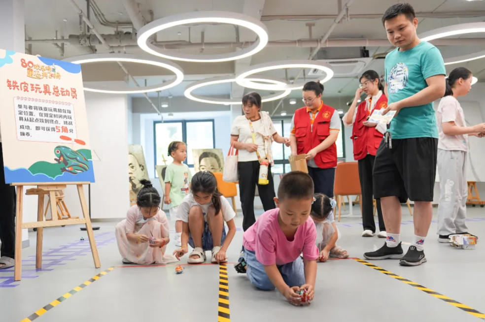 “我最喜欢赛车和拍洋片!”近日,在西林街道泰盈社区新时代文明实践站,6岁的陆黛莜举着小车,笑着说道。铁皮青蛙、俄罗斯方块、拍洋片……这是社区特意为25位小学员准备的暑托班课上——“爸妈同款”童年游戏体验,用满满的“80后回忆杀”,开启孩子们的快乐暑假。