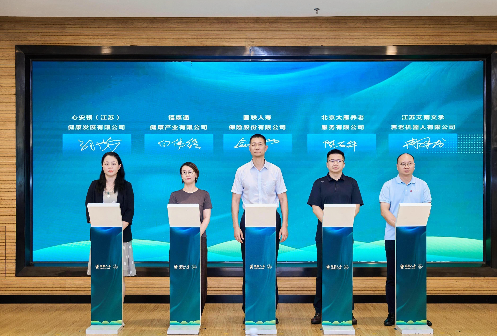 活动现场,国联人寿与福康通健康产业有限公司、北京大雁养老服务有限公司、江苏艾雨文承养老机器人有限公司、心安顿(江苏)健康发展有限公司四家优秀企业签署伙伴关系协议。此次合作将进一步丰富国联人寿的康养服务生态,提升服务能力与场景覆盖,为客户提供更全面、更优质的养老解决方案。