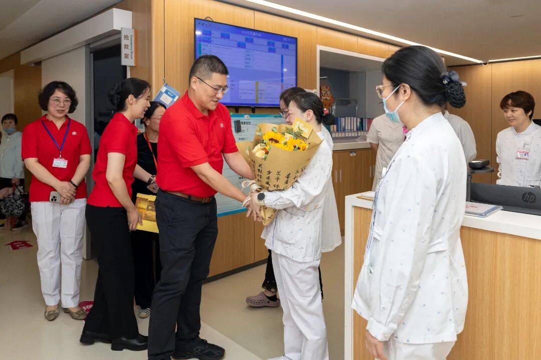 9月9日上午,南京医科大学第三附属医院(常州二院)领导班子及职能科室代表在院党委书记、院长汤黎明的带领下,分三路前往临床一线,向坚守岗位的医务人员和带教老师们致以节日的问候和祝福。