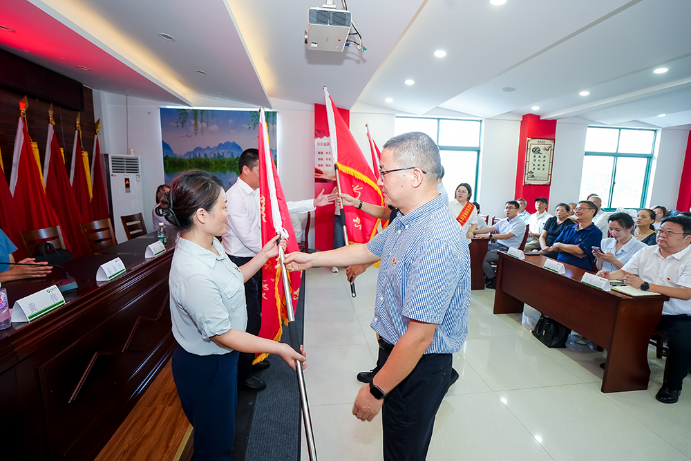 随后举行庄重的授旗仪式,将活动推向高潮。当地政府领导向西莲村党总支部授旗,国家金融监督管理总局高淳监管支局领导向高淳支公司党支部授旗,中国人寿江苏省分公司客户服务管理中心/消费者权益保护部党支部书记向南京市分公司运营服务部/消费者权益保护部党支部授旗。三面“金融知识宣教党员先锋队”旗帜的授予,标志着以党建为引领的金融知识普及工作以创新形式向基层纵深推进,金融宣教工作迈向更深、更实的新阶段。
