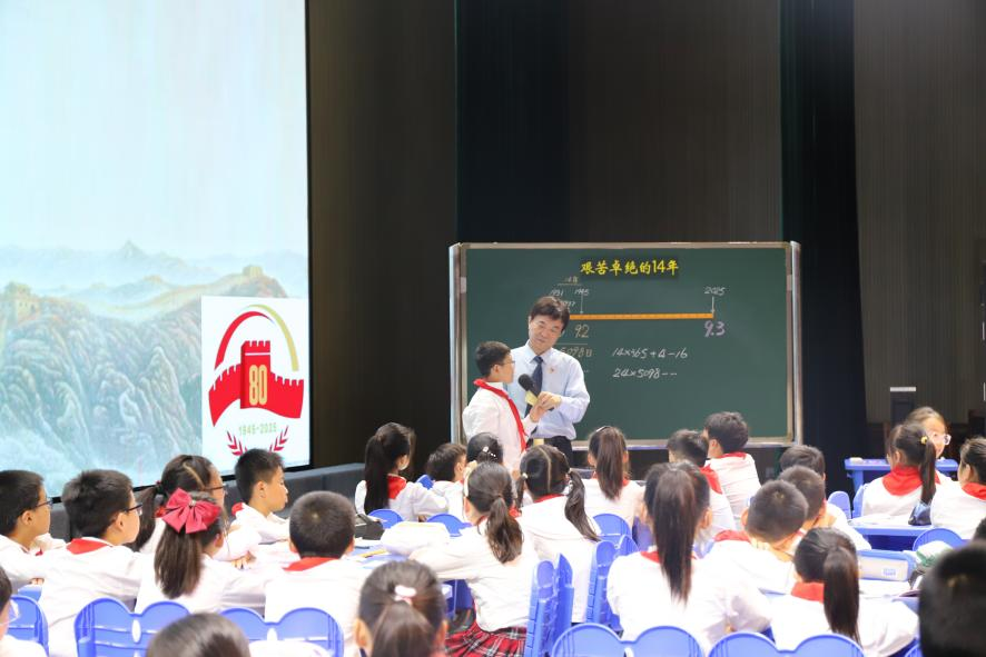 华应龙老师以《用“国数课”讲好抗战故事》为主题,为四(10)班学生带来了一节精彩的国数课,为全体教师呈现了一个数学思政主题教学的卓越范本。这节课不仅仅是关于时间换算、年月日知识的应用,更是一次对历史的触摸。
