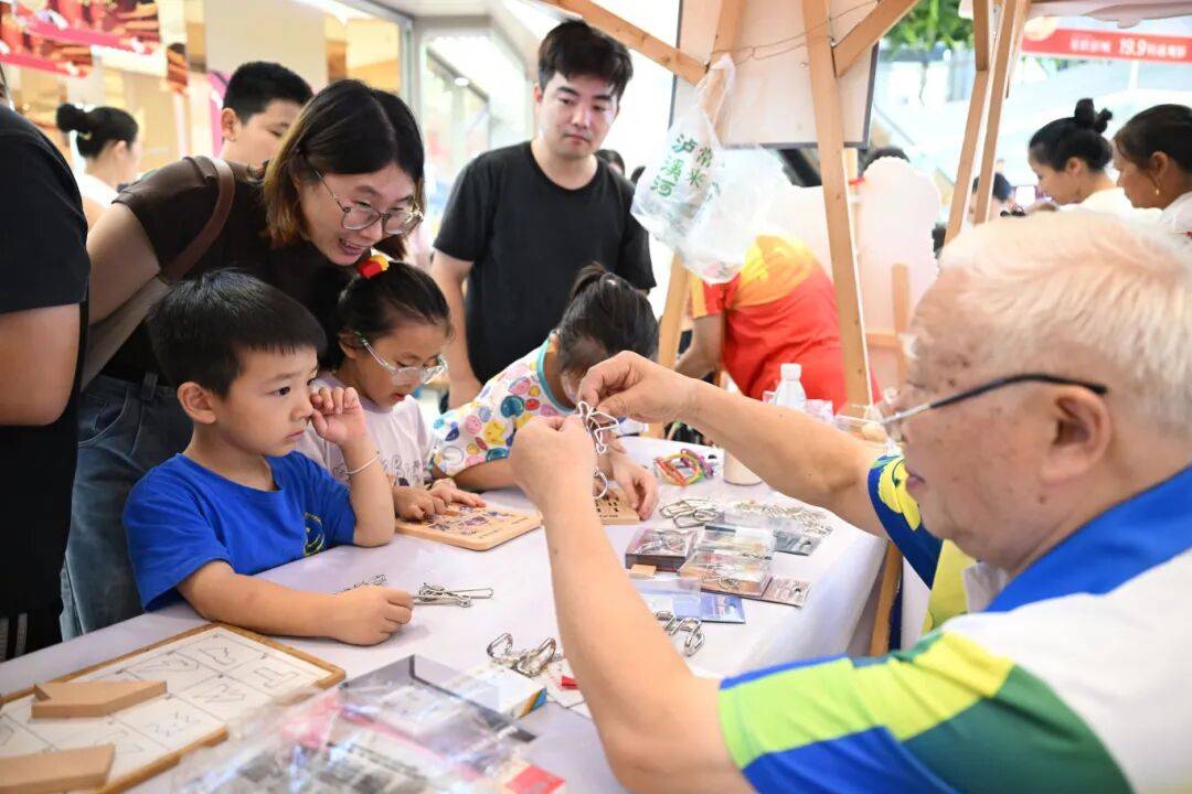 活动核心区域是10辆特色花车组成的“非遗集市”,集中展示各地精选的非遗项目。从精巧的七彩线结、缂丝团扇,到令人叹为观止的微雕技艺,再到可品可尝的糖画、板桥菜粑粑等非遗美食,市民可近距离观赏、互动,亲身感受传统技艺的魅力。特别设置的“大九连环挑战赛”“面塑体验课”“装置墙打卡”等互动环节,进一步提升群众的参与感与获得感。