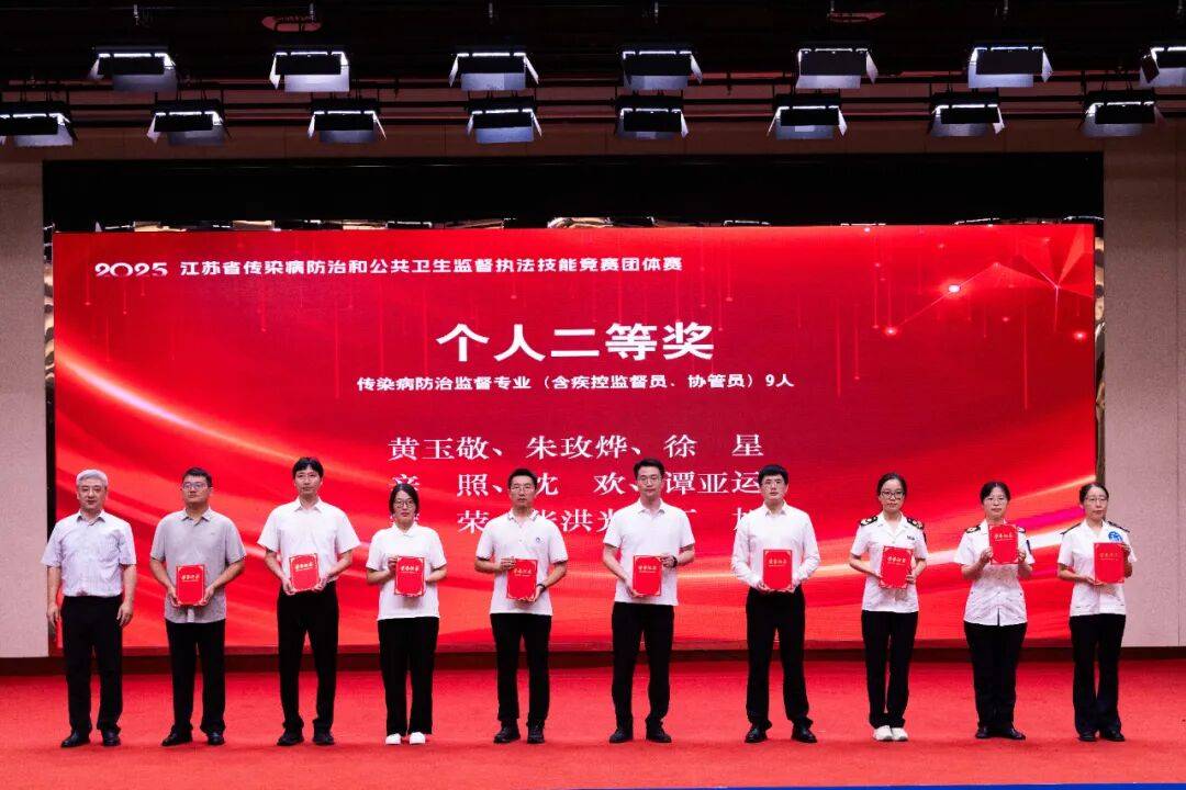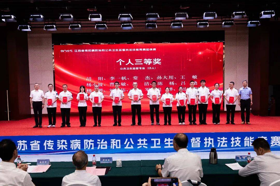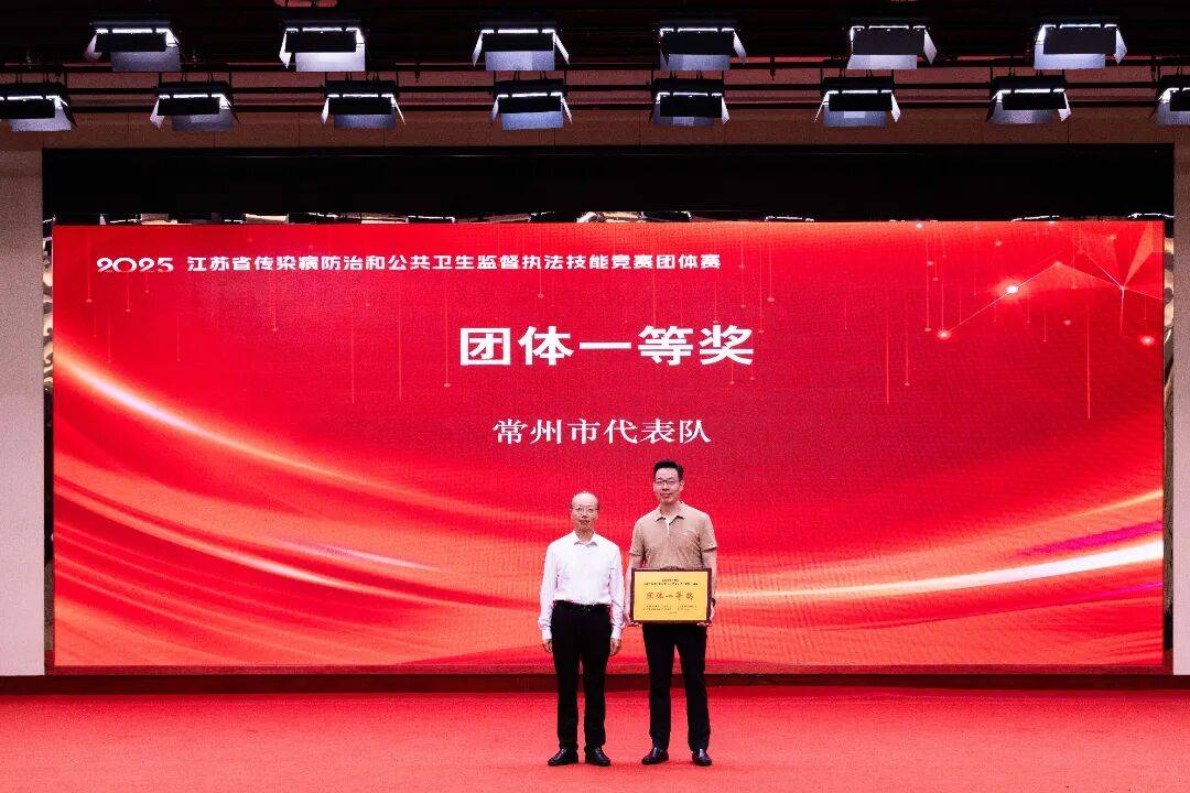 2025年9月28日,从江苏省传染病防治与公共卫生监督执法技能竞赛现场传来捷报,常州市卫生健康委员会代表队在比赛中表现卓越,凭借扎实的理论功底、精湛的专业技能和出色的临场发挥,一路过关斩将,最终荣获大赛团体一等奖的优异成绩,充分展示了常州卫生监督执法队伍强大的专业实力和昂扬的精神风貌。