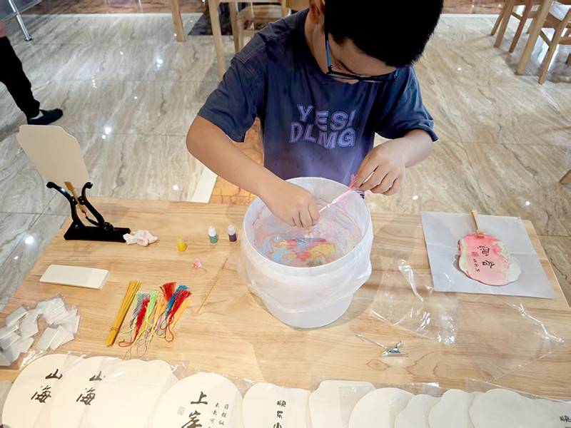 最受欢迎的当属非遗漆扇制作体验,医护人员及其子女在专业指导下,创作出独具特色的漆扇作品,感受中华传统工艺的魅力。
