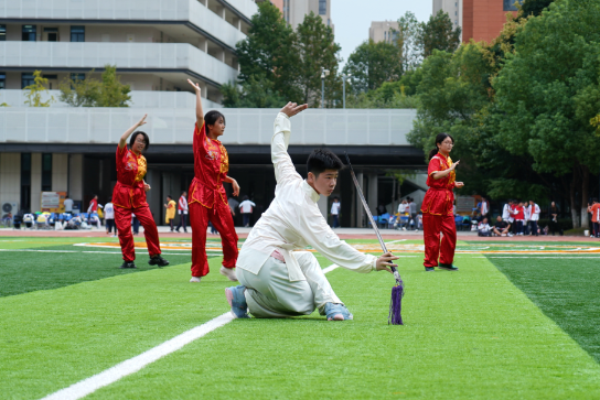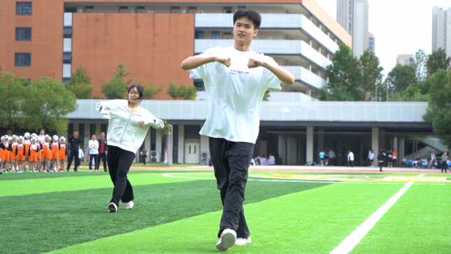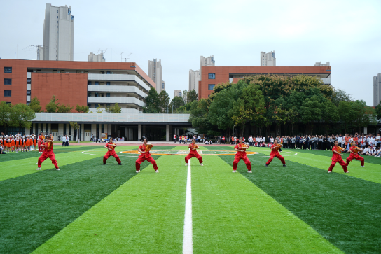 仪式过后,小初高三个学部联袂呈现的精彩串烧表演将开幕式推向高潮。表演融合武术、健美操、舞蹈与街舞等多种形式:武术表演中,学子们招式刚劲有力,尽显中华传统文化瑰宝的力与美;街舞表演则以动感节奏展现青春狂欢,呼应其奥运项目的现代属性;健美操与舞蹈环节则将柔美与活力结合,为现场带来视觉与听觉的双重盛宴。