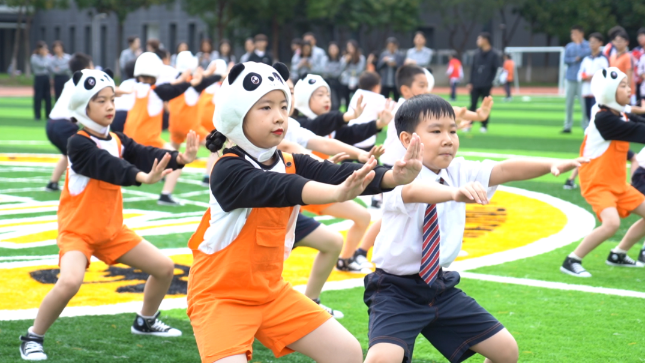 河外小学部的孩子们化身灵动“熊猫”与朝气少年,他们用中华传统武术的一招一式,衔接街舞的酷炫律动,动静之间尽显童真与活力。精彩的演出赢得全场师生阵阵掌声,充分展现了河西外校学子全面发展的综合素质。
