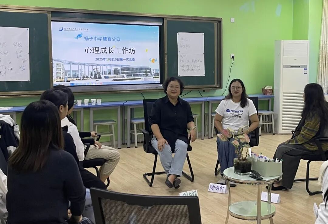 10月15日晚上,南京师范大学附属扬子中学“慧育父母”心理成长工作坊迎来了首次活动。扬子中学学生指导部家长学校心理成长工作坊项目由心理教育中心负责组织,心理老师刘红娟、顾鸣轩共同带领,与十位怀着对亲子关系深度思考与成长渴望的父母齐聚一堂,共同踏上了一段为期12周的自我探索与养育智慧提升之旅。