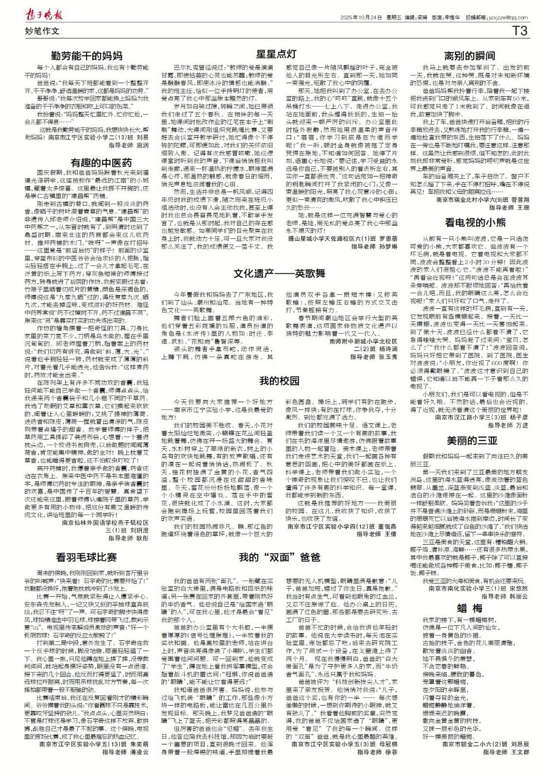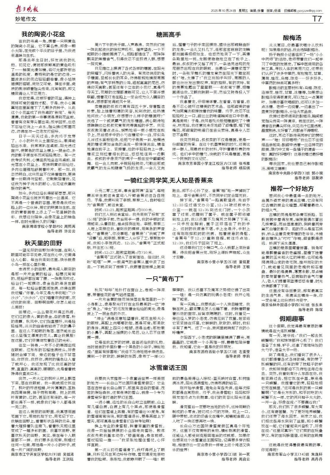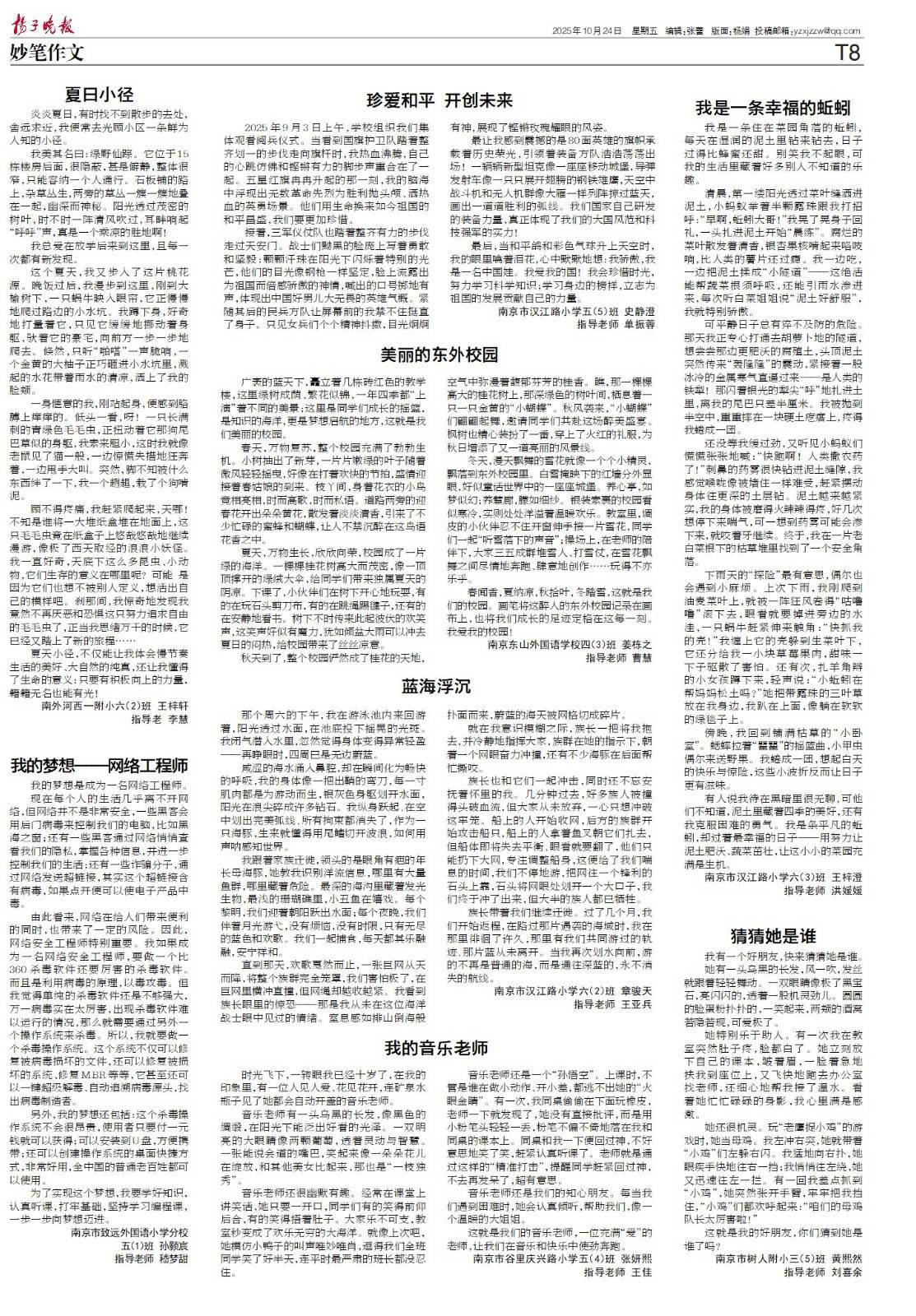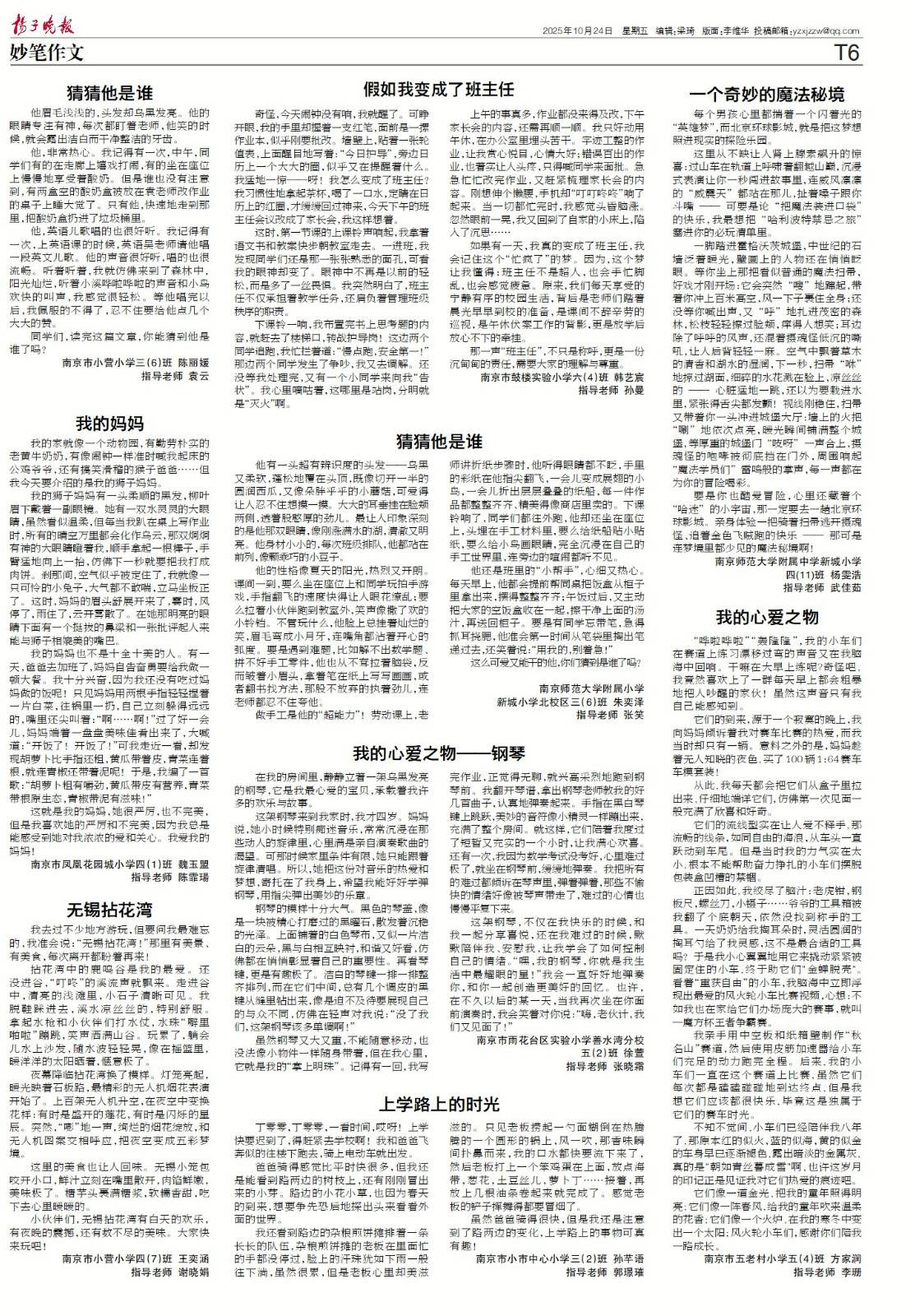 【喜报】2025年10月24日扬子晚报小记者刊登作品