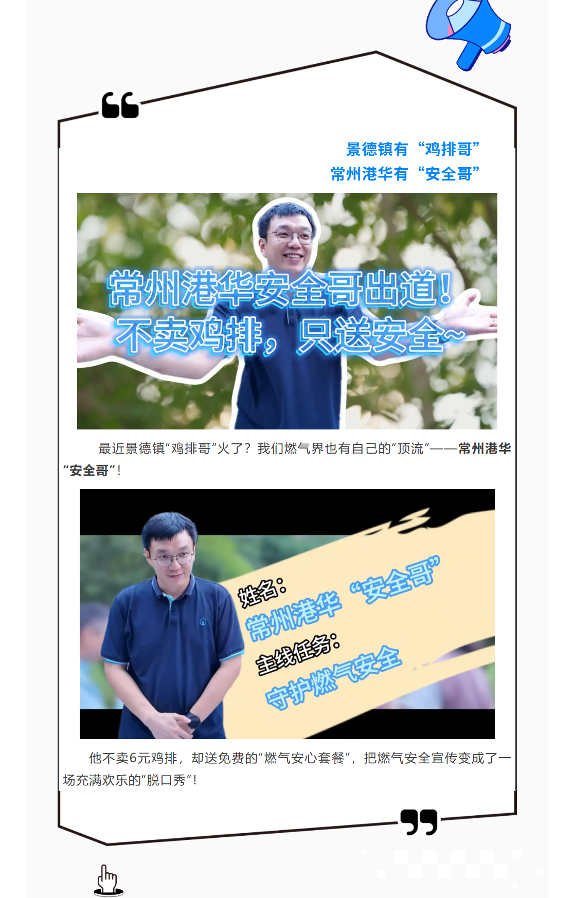 常州港华安全哥出道!不卖鸡排 只送安全!