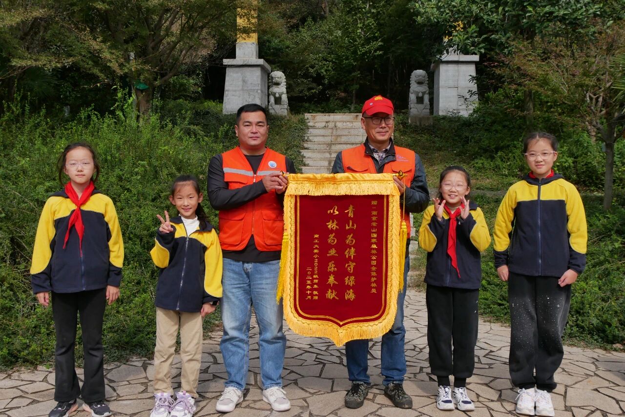 在重阳节来临之际,孩子们还为老山护林员们送上了特别的敬意。他们整齐地站在护林员面前,献上一面满载尊敬与感恩的锦旗,表达对他们辛勤付出的感谢。护林员们接过锦旗,脸上洋溢着欣慰的笑容。这一刻,尊老敬老的传统美德在孩子们心中深深扎根。
