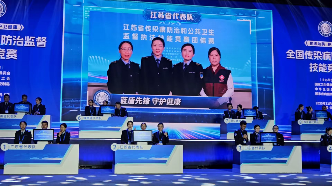 在近日由国家卫生健康委员会等部门联合举办的2025年全国传染病防治监督执法技能竞赛中,江苏省代表队团结协作、表现出色,荣获团体一等奖。值得庆贺的是,我市卫生监督所黄玉敬同志作为代表队重要成员,在比赛中展现了扎实的专业素养和良好的精神风貌,为团队取得优异成绩作出了积极贡献。