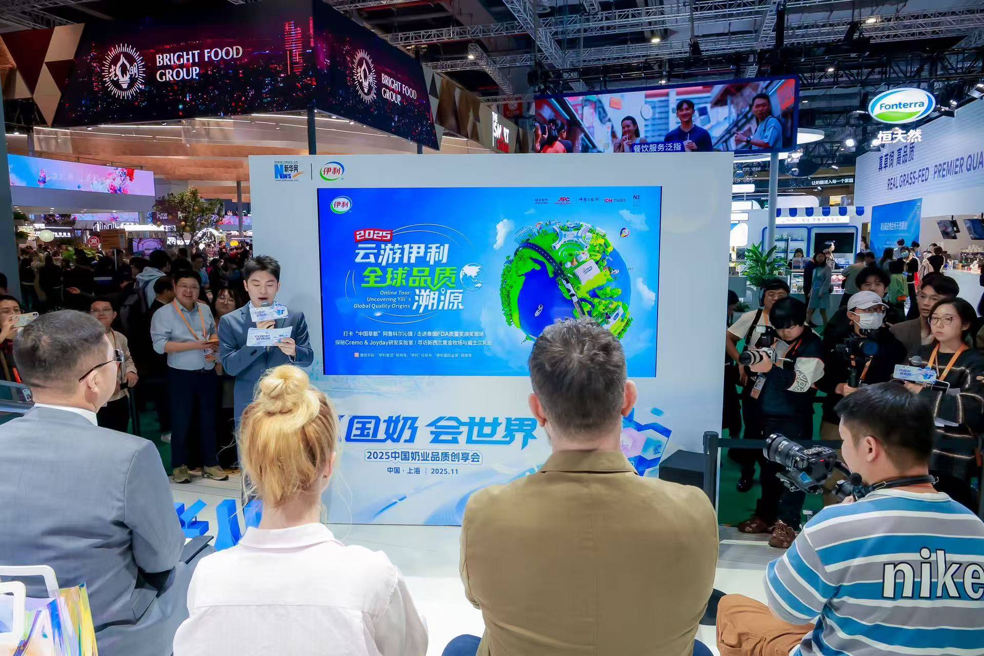11月7日,在第八届中国国际进口博览会现场,2025年“云游伊利·全球品质溯源”举办了纪录片首映,宣告该活动正式启动。伊利全球合作伙伴代表、新闻媒体等嘉宾参加了首映活动。