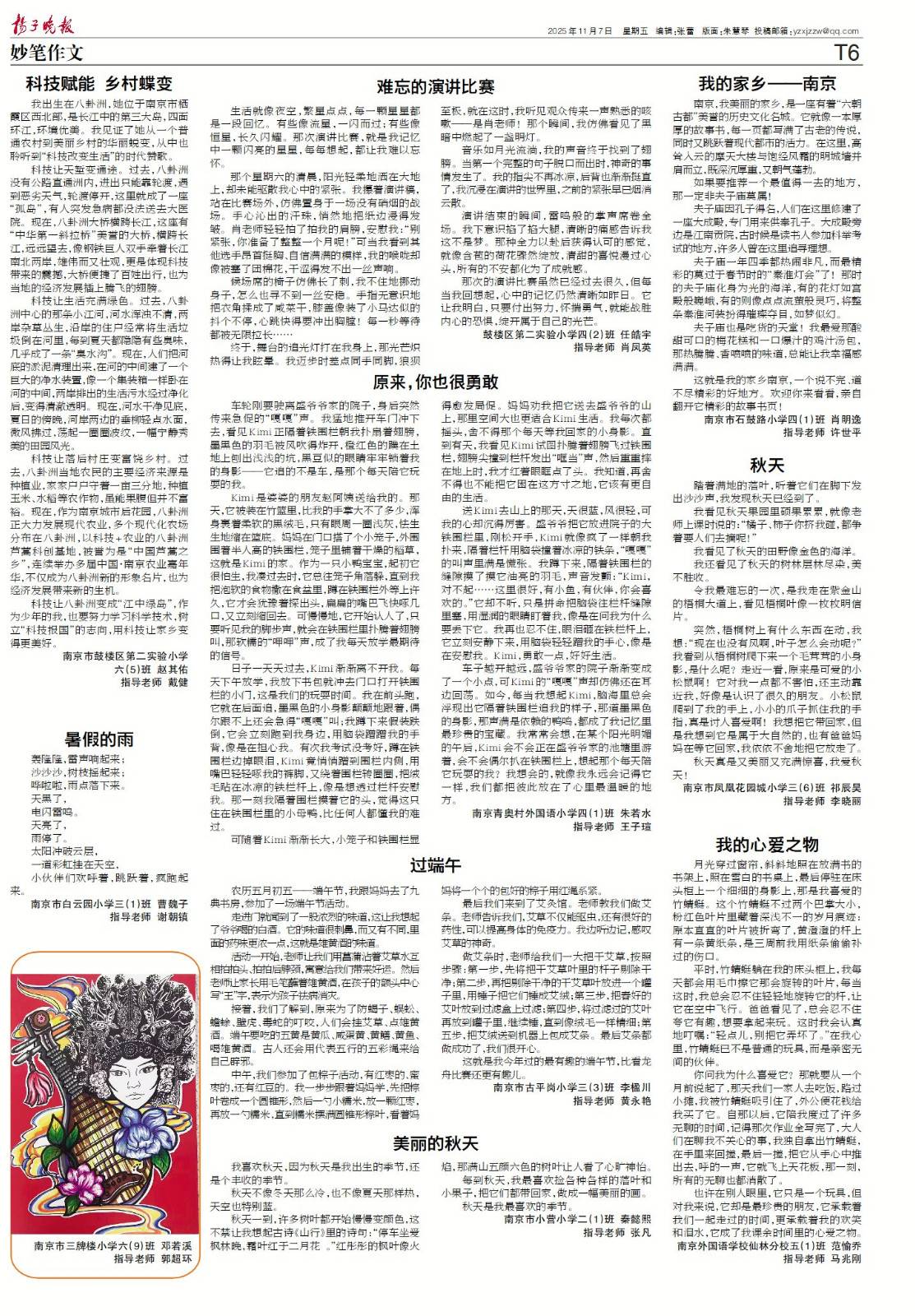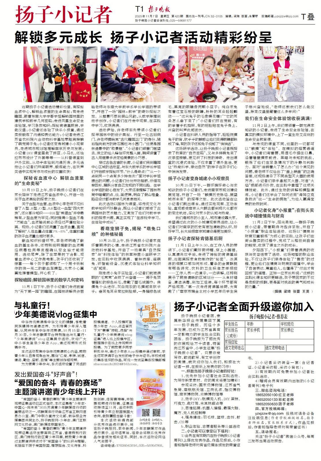 【喜报】2025年11月7日扬子晚报小记者刊登作品