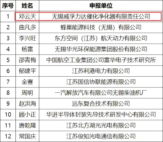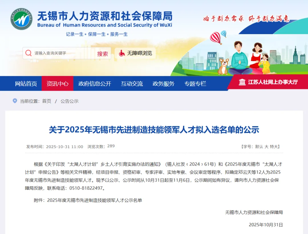 近期,无锡市人力资源和社会保障局公示了《2025年度无锡市先进制造技能领军人才公示名单》,来自惠山经开区企业无锡威孚力达催化净化器有限责任公司的首席技师邓云天成功入选。