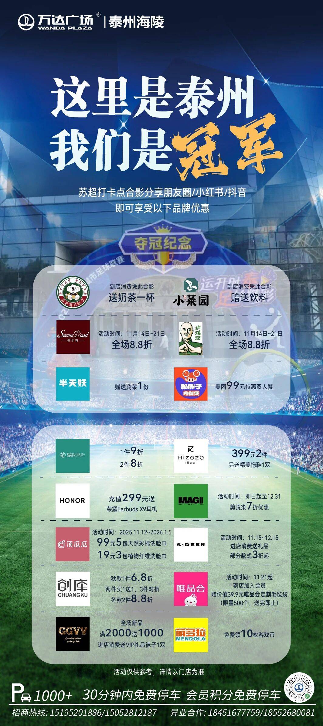 “苏超”打卡点合影分享朋友圈、小红书、抖音等,即可享受以上品牌优惠。
