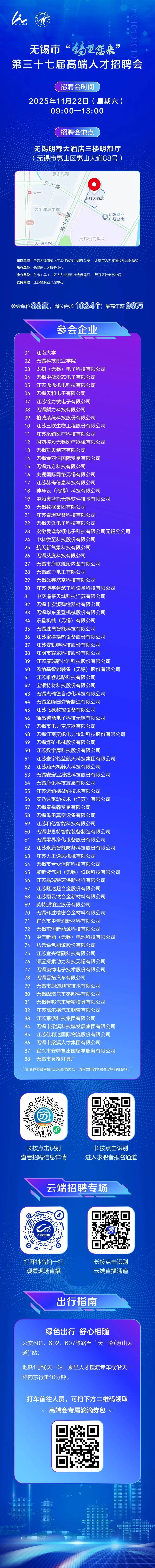 是高端人才,来无锡,就在本周六(11月22日)!1000+岗位等你来pick