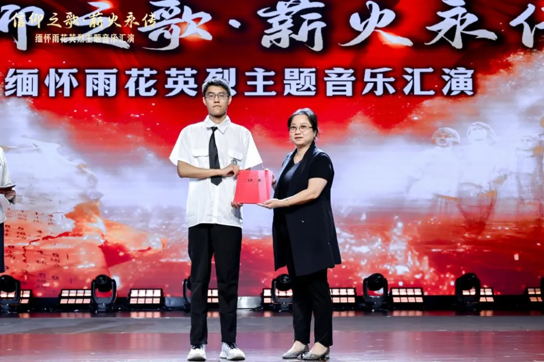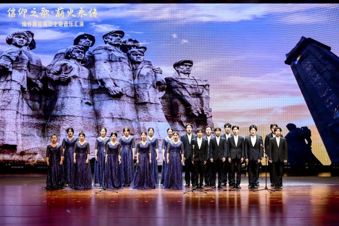 联盟扩圈:凝聚合力,构建“大思政”育人新格局 自2023年创建以来,雨花台烈士纪念馆已与24所高校共建“大思政课”实践教学基地联盟。联盟秉持“汇聚馆校合力、融通红色文化、赋能立德树人”的宗旨,通过课程共研、活动共办、人才共育等多元路径,有效激活“思政小课堂”“社会大课堂”与“网络云课堂”的协同育人效能,持续推动红色资源转化为生动的育人资源。 南京工业职业技术大学马克思主义学院院长王晓峰作为第二批联盟高校代表致辞,分享了该校结合职业教育特色开展思政教育的经验。该校通过跨学段“同题异构”、联动研学、情景体验等形式,让英烈事迹可知可感,引导学生深刻理解“革命理想高于天”的崇高境界,自觉成为红色基因的传承者和践行者。 此次活动上,上海大学、华中师范大学、江南大学、南京工程学院、南京特殊教育师范学院、三江学院、无锡师范高等专科学校、南京城市职业学院、无锡城市职业技术学院、南京旅游职业学院、南京机电职业技术学院等十一所高校正式成为联盟第三批成员,标志着这一馆校协同育人平台进一步壮大。 上海大学学生工作办公室主任孟祥栋代表新成员高校发言。他表示,上海大学与雨花台历史渊源深厚,邓中夏、恽代英、吴振鹏等多位雨花英烈曾是上海大学的师生。加入联盟后,学校将重点在共建实践教学基地、共研红色文化资源、共育卓越时代新人等方面深化合作,让信仰之火永不熄灭。 音乐叙事:青春致敬,让信仰在旋律中升华 本次音乐汇演以“沉浸式音乐叙事”特色,精心编排了十余个主题节目。师生们倾情演绎,用艺术语言生动诠释了雨花英烈的感人事迹和崇高精神。 节目内容丰富多元:南京艺术学院的男声合唱《镣铐铮铮响》,展现革命者的坚贞不屈;南京晓庄学院的音乐情景剧《假如我为了真理而牺牲》再现了英烈们视死如归的英雄气概;江苏第二师范学院与雨花英烈事迹宣讲团合作的情景演唱《最美的微笑》用温情传递信仰的温度;南京师范大学的合唱《再访雨花台》带领大家走进雨花台聆听历史的回响,感悟信仰的力量;南京市雨花外国语小学和郑和外国语学校同学们带来的童声合唱《雨花石》和《丁香花开了》清澈纯真,象征着红色种子在幼小心灵中生根发芽。 尤为亮眼的是由东南大学学子原创的歌曲《虹图》在本次活动中首次唱响。该作品的创作灵感始于两年前创作团队成员初访雨花台烈士陵园时受到的触动。今年夏天,创作团队从港珠澳大桥、雨花台建筑等跨越时代的工程中汲取“虹”的意象,将英烈故事融入歌词旋律,连接历史与未来,力求让英烈精神与当代青年心声同频共振。 团队已将《虹图》及历时两年编纂的雨花主题文艺汇编《砼声颂》捐赠给雨花台烈士纪念馆。汇编中附有团队成员的注释感悟和配乐朗诵音频。团队负责人翟修程表示,他们不仅是雨花英烈事迹与精神“学习者”,更要做创新的“传承者”和“传唱者”。 品牌赋能:思政创新,红色基因在歌声中传承 此次音乐汇演是雨花台烈士纪念馆深化馆校合作、创新思政教育模式的重要成果展示。为充分发挥雨花台烈士纪念馆首批大思政课实践教学基地作用,今年,围绕“雨花思政”品牌,纪念馆联合在宁大中小学深入推进“信仰之歌”音乐思政课,以英烈原创歌曲及后世缅怀作品为载体,不断推动思政教育在内容与形式上创新,将思政教育融入审美体验。截至目前,“信仰之歌”音乐思政课已走进19所学校,覆盖师生4000余名,并荣获2025年江苏省基层思想政治工作典型案例。 信仰如炬,照亮前路;薪火永传,生生不息。本次“信仰之歌·薪火永传”主题音乐汇演暨联盟扩盟仪式,不仅是对革命先烈的深切缅怀,更是对红色基因传承、时代新人培育的生动实践。 雨花台烈士纪念馆党性教育处副处长孙静静介绍,希望通过沉浸式音乐叙事的方式,让红色种子种入青少年学生心中。未来,纪念馆也诚挚欢迎更多高校加入,深入挖掘红色资源、创新传播形式,让雨花英烈事迹与精神在新时代持续焕发新的生命力。