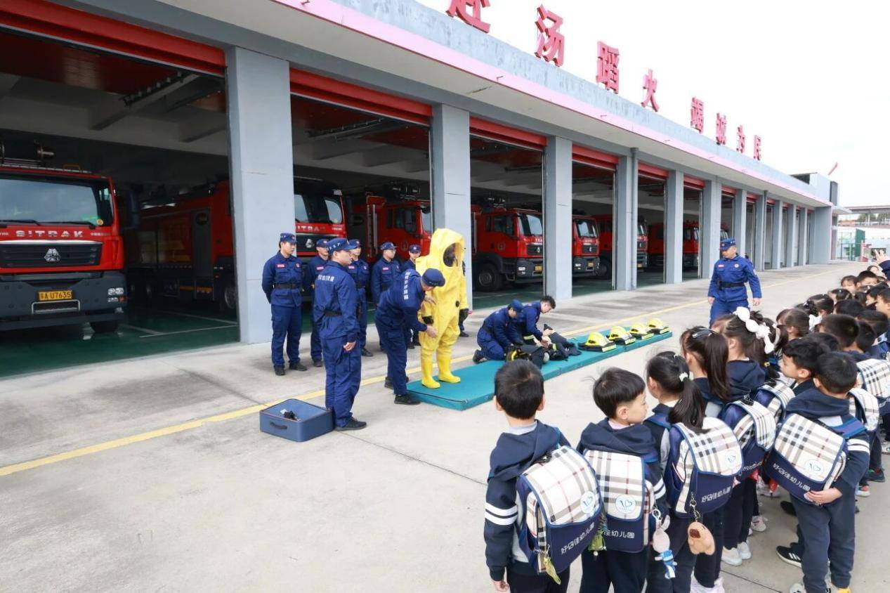 在“119”消防宣传月到来之际,11月4日,国家危化品应急救援扬子石化队迎来了一批特殊的参观队伍——来自大厂好亿佳幼儿园的110名师生。扬子石化队精心组织了一场内容丰富、体验感十足的消防开放日活动,通过零距离接触和互动,在孩子们心中播下了安全的种子。