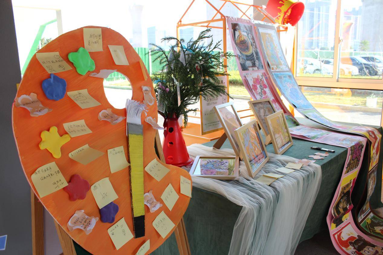 “闪闪发光的你!”“祝你越画越好!”……画展现场一隅,一面贴满留言条的“祝福墙”成为暖心亮点,字里行间满是学校师生的真挚祝福。