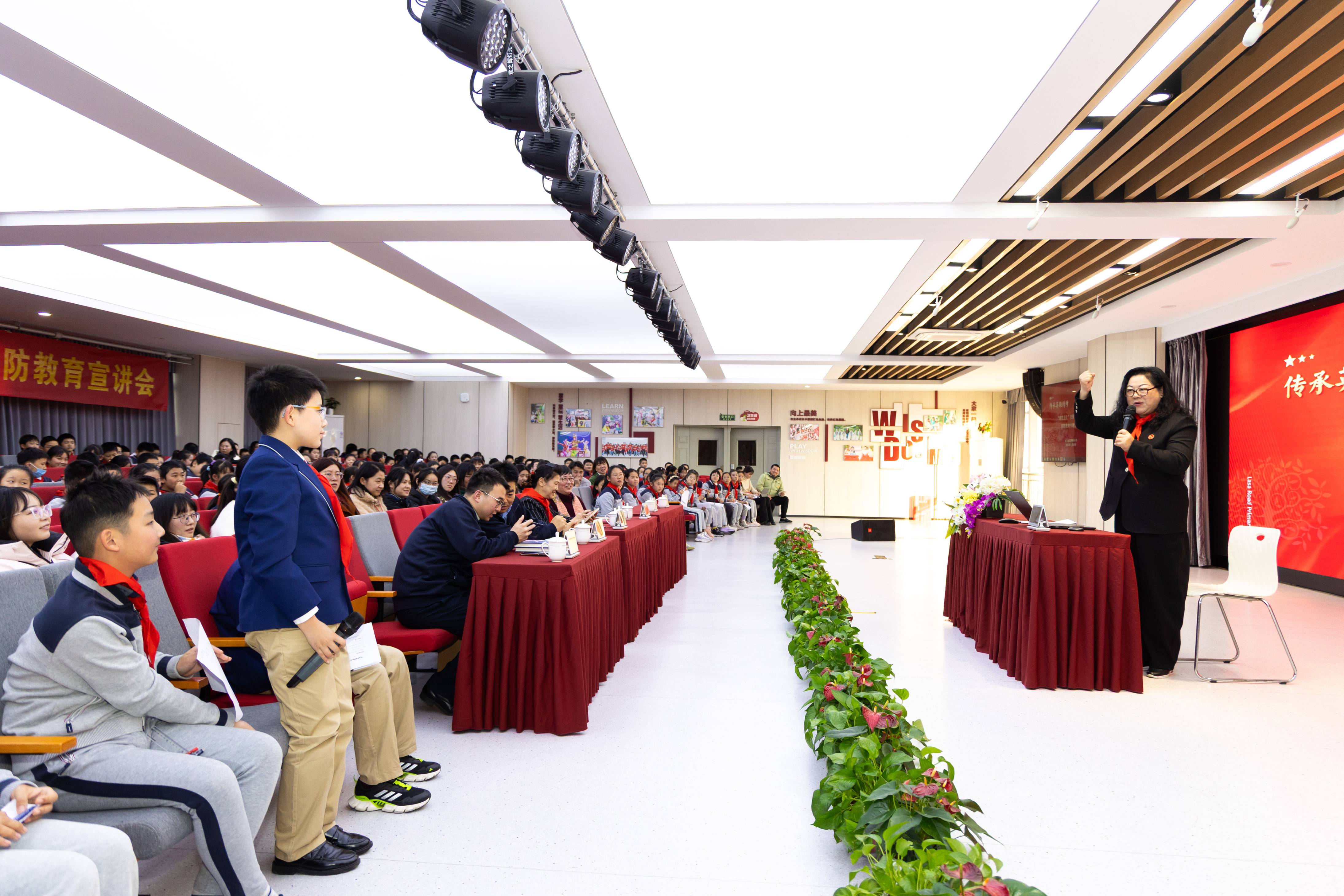 “中国,不可战胜!”11月26日下午,稚嫩而激昂的呐喊声回荡在南京市拉萨路小学报告厅。在“海空卫士”王伟妻子阮国琴国防教育专题宣讲会上,王伟夫人、海军上校阮国琴,爱国主义教育专业委员会首席顾问郭庆红,南京微防文化交流中心主任陈朋祥等嘉宾携手拉萨路小学五年级师生,共赴一场跨越时空的英雄之约。现场,拉萨路小学聘请阮国琴老师、郭庆红老师为拉萨路小学国防教育辅导员。