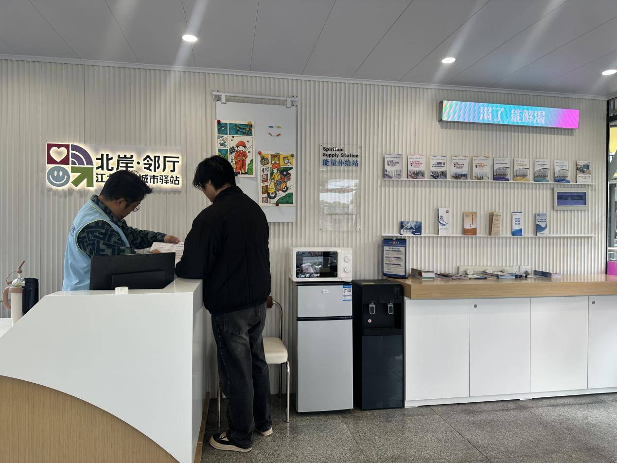 “以前等单只能在路边吹冷风,现在有‘北岸·邻听’驿站,喝口热水、歇歇脚,心里暖烘烘的!”外卖骑手小周边用微波炉热饭边笑言。近日,南京江北新区盘城街道江北社区“北岸·邻厅”城市驿站对外开放,这座由闲置联勤岗亭改造的“邻里客厅”,让城市边角空间焕发新生,更以贴心服务为居民与户外劳动者撑起暖巢,让城市治理温度浸润民生细节。