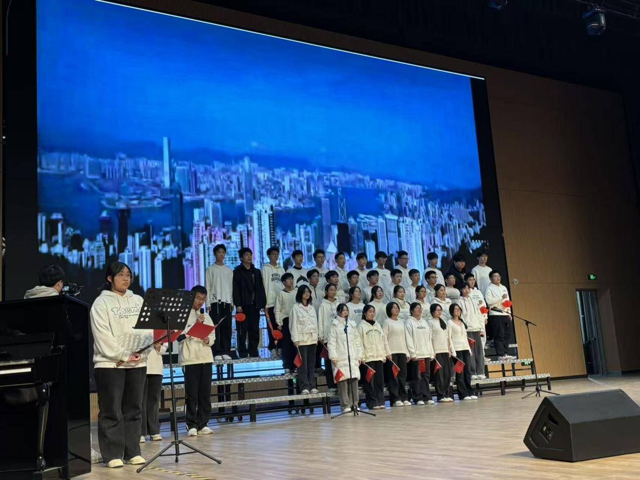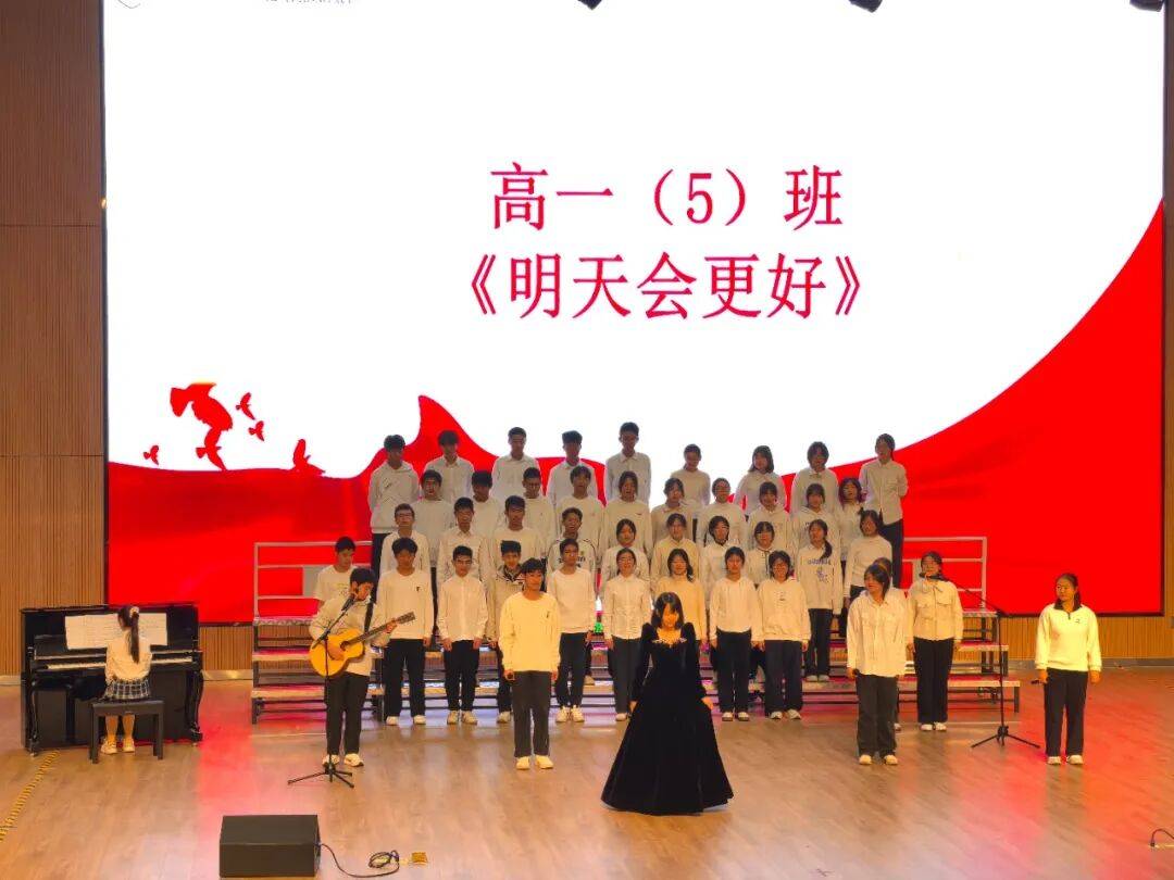 比赛现场,灯光璀璨,气氛热烈。16个班级依次登台,各展风采,每一首曲目都紧扣爱国主题,激昂澎湃、深情婉转,将青春的朝气与家国的赤诚融入音符之中。高一12班一曲《我和我的祖国》,旋律悠扬,情感真挚,唱出了新时代青年与祖国血脉相连的深厚情谊;高一11班、高一14班分别演绎了《我爱你中国》,歌声铿锵有力,字字饱含深情,传递出对祖国母亲最炽热的告白;高一1班、高一7班、高一10班、高一15班不约而同地选择《紫荆花盛开》,用最婉转的歌声咏叹血脉相连的深情,展现出少年们的家国大义……各班在编排上匠心独运,融入朗诵、舞蹈、乐器等元素,既彰显艺术美感,又体现青春创意。整场比赛高潮迭起,掌声不断,充分展现了新时代高中生深厚的爱国情怀与昂扬的精神风貌。