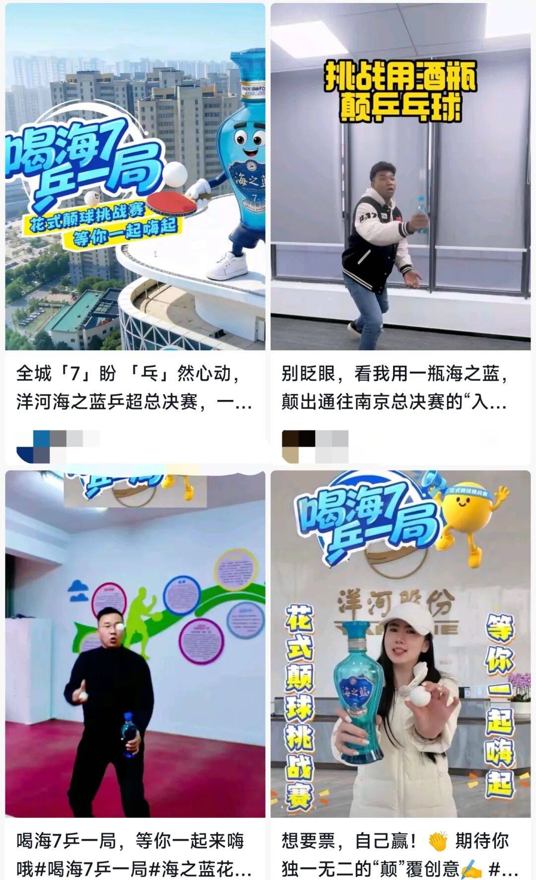 在抖音、视频号、小红书等平台,来自全国各地的消费者带上话题#喝海7乒一局#海之蓝花式颠球挑战赛,共创了无数精彩时刻。