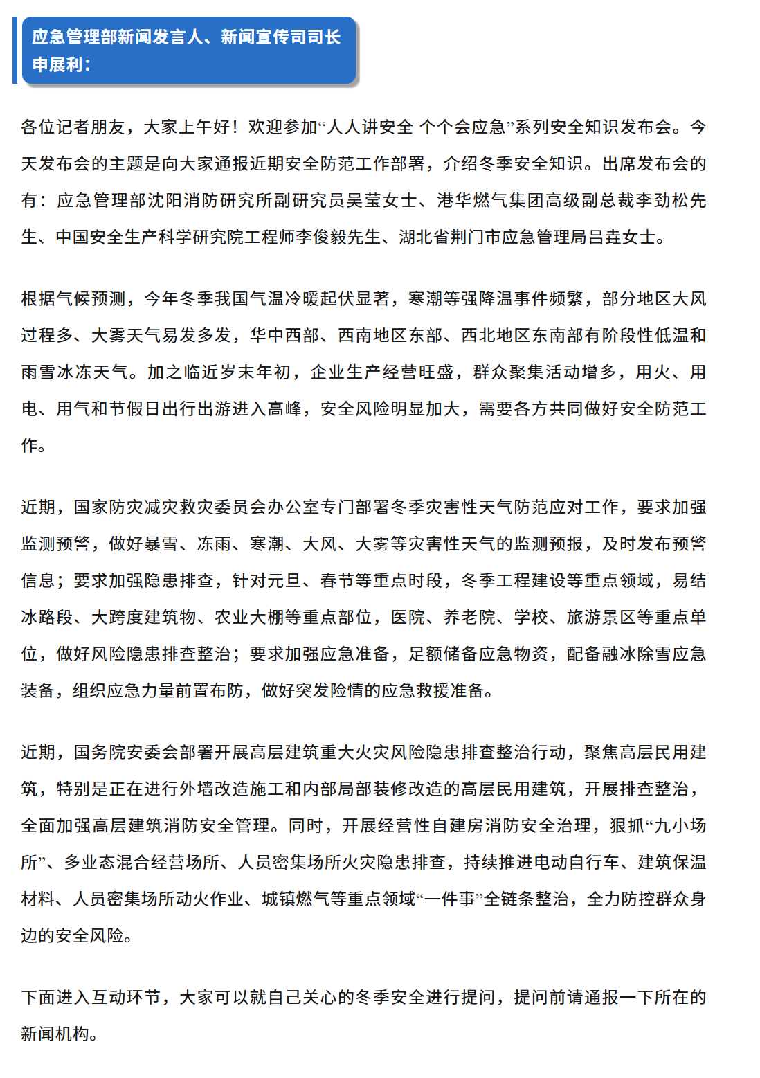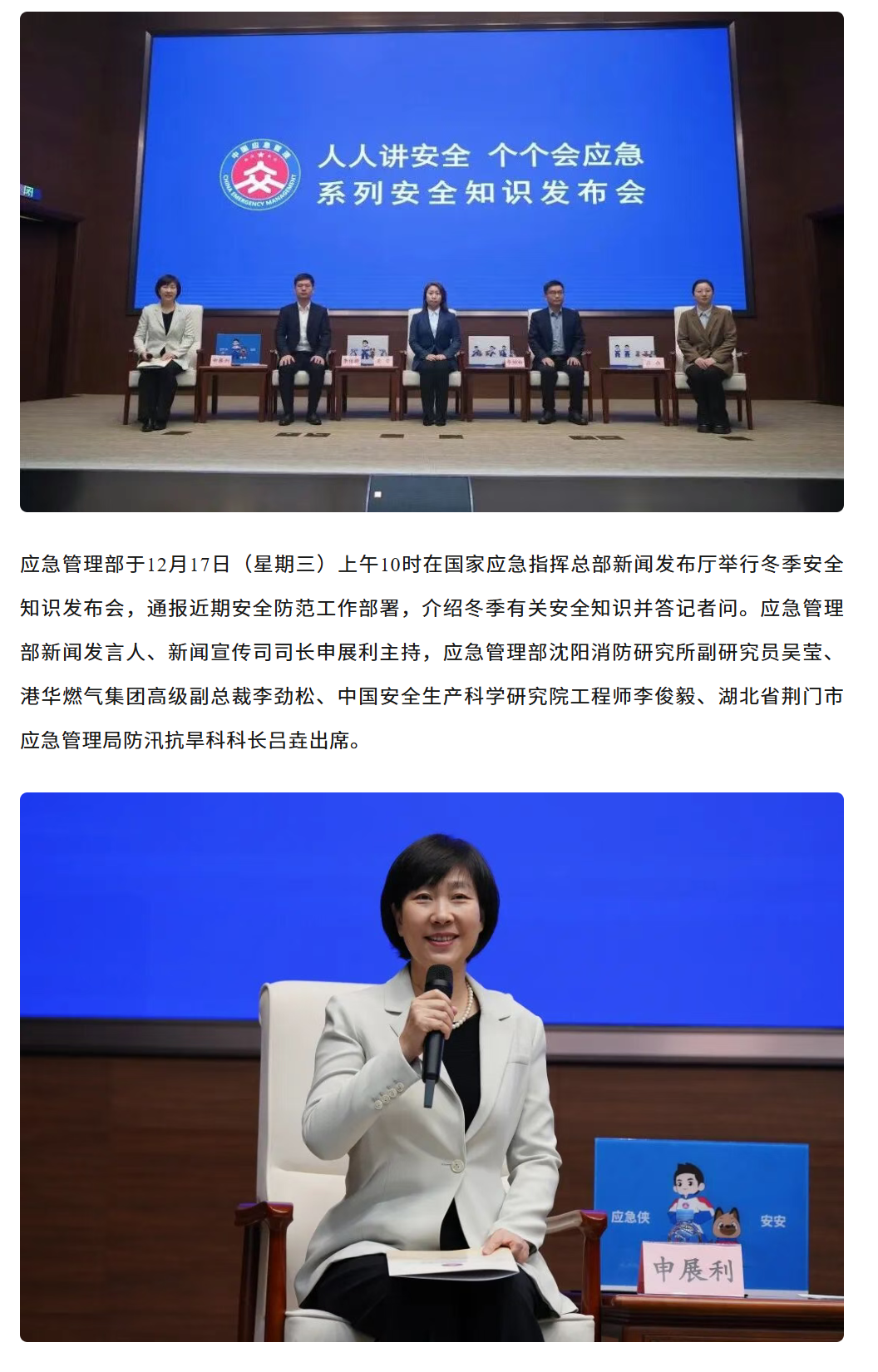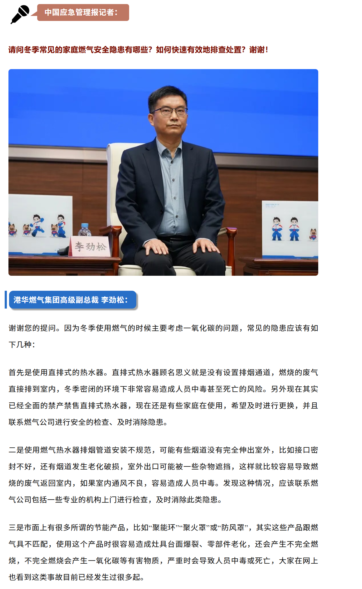 应急管理部举行冬季安全知识发布会,港华集团应邀参加发布