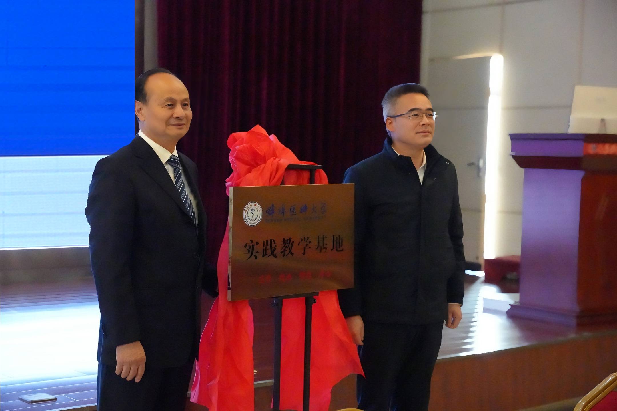 随后,蚌埠医科大学教务处处长童旭辉与孟庆海院长共同为“蚌埠医科大学实践教学基地”揭牌。该基地的设立,将为蚌埠医科大学医学生提供优质的临床实践平台,助力提升学生临床诊疗能力;同时,通过院校资源共享,将有效带动涵博医院师资队伍建设与医疗服务水平提升。