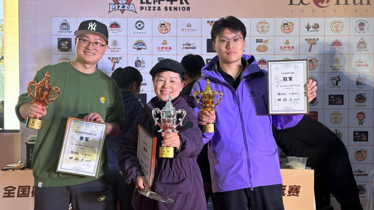 孟宇恒(右一)获得街头披萨交流赛冠军