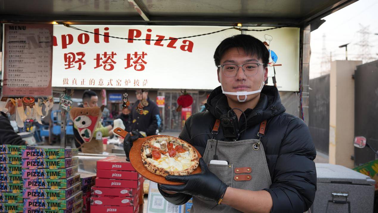 想法刚说出口,父母先犯了嘀咕:“刚毕业就摆摊,会不会太辛苦?”但看着儿子满脸的斗志昂扬,他们最终还是选择支持。为了学正宗手艺,零基础的孟宇恒专程北上参加专业培训。他曾一天做五六十个试验饼反复练手,还熬夜钻研48小时冷发酵的温度控制,笔记记满了厚厚一本。烤披萨时,他不靠定时器,全凭紧盯窑火判断火候,“饼边微微焦褐,芝士开始冒泡,就刚好!”凭借一手绝活,他一举斩获品牌方举办的2025全国街头披萨交流赛冠军。