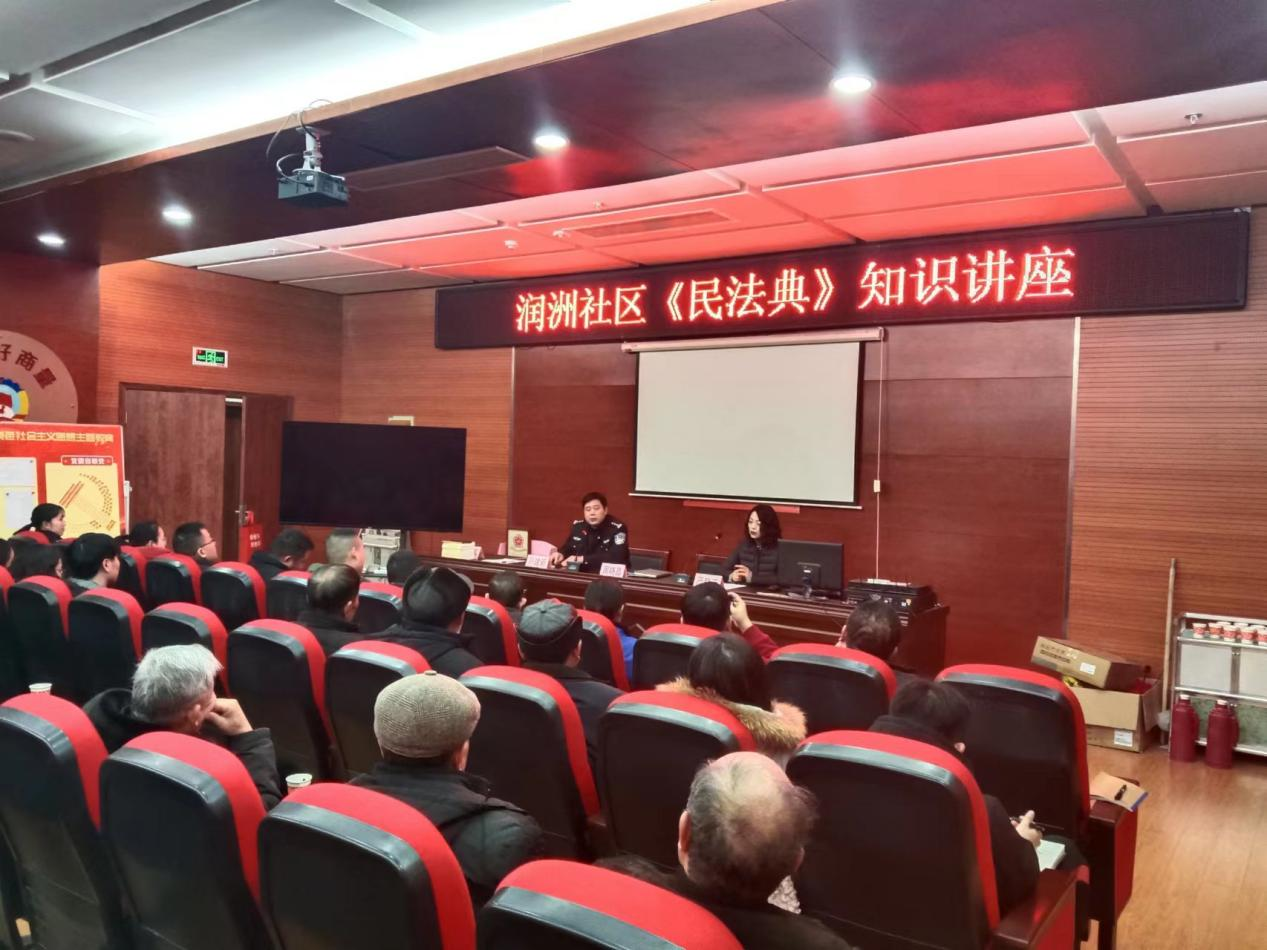 党建引领强根基,织密法治治理“组织网”。社区以党总支为核心,下设1个功能型小区党支部,覆盖润洲家园和21克拉2个小区,同时按楼栋划分18个先锋小组,串联37个党员中心户,构建起“社区党总支—小区党支部—楼栋先锋组—党员中心户”的四级组织体系,将党组织覆盖到基层治理的“神经末梢”。通过“支部进小区”行动,将7个网格划分为74个微网格,每个网格配备1名网格长和3名志愿者,协调解决管网改造、停车位规划等问题32项,助力推动实现社区零投诉、零上访。同时,社区注重党员队伍法治素养提升,定期组织“法律明白人”培训,组建“润洲调解团”,以48人的“法律明白人”调解队伍为主体,吸纳法官、民警、律师、心理咨询师、人民调解员等专业力量,开展普法宣传活动45场,覆盖居民2000余人次,为法治治理提供坚实组织保障。