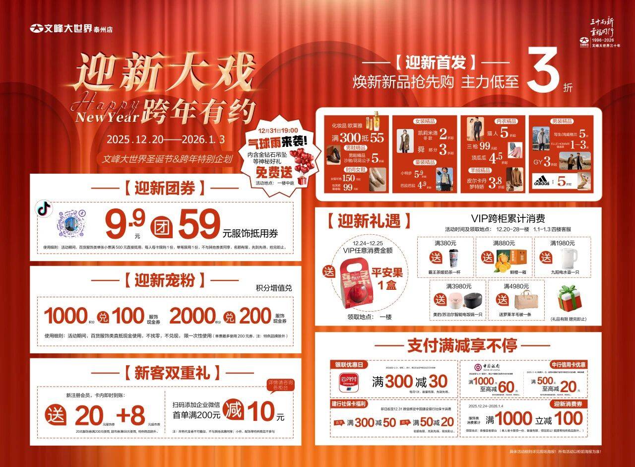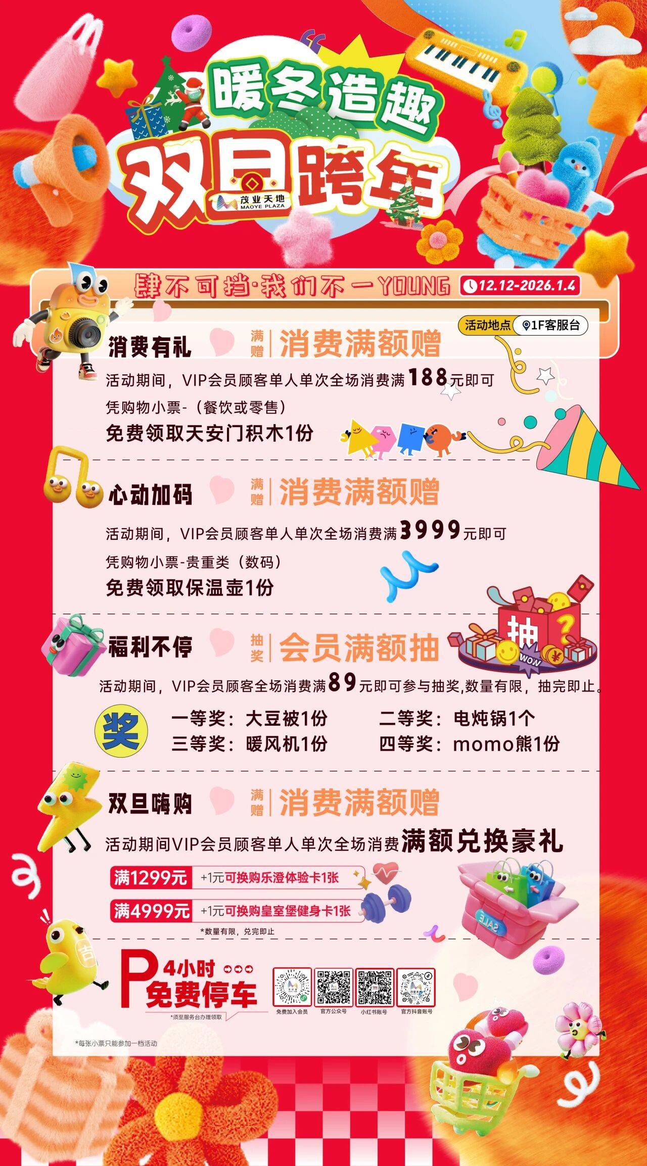 温馨提示:跨年夜人员密集,建议绿色出行;保管好个人物品,遵守商场秩序,文明参与活动。部分活动需关注商家公众号获取资格,补贴券领取时间、商场延长营业时间以官方通知为准。