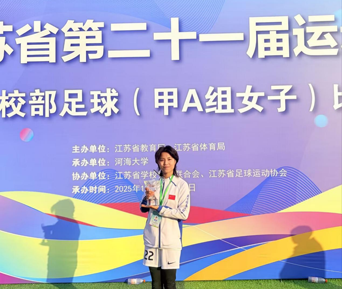 这份对集体的归属感,也让我主动加入了学校高水平女子足球队。在球场上肆意奔跑、和队友并肩冲撞拼抢的日子里,那种久违的团队热血再度沸腾。今年我们还代表学校征战江苏省第二十一届运动会高校部足球赛,成功斩获甲A组第三名。站在领奖台上的荣光与激动,此刻回想起来依旧让我心跳加速。