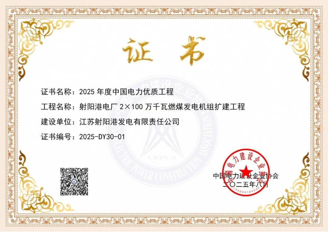 在江苏省盐城市绵长的黄海岸边,一座现代化的能源基地正焕发着勃勃生机。2023年12月24日,随着2号机组顺利通过168小时满负荷试运行,江苏国信射阳港发电公司2×100万千瓦燃煤发电机组扩建工程全面投产,标志着江苏省“十四五”期间首个核准并建成投运的百万千瓦级煤电项目圆满收官。这不仅是一项重点工程的胜利落地,更是射阳港发电公司在“十四五”征程中,勇担能源保供使命、推动绿色低碳转型、铸就行业精品工程的生动写照。2025年8月12日,射阳港电厂2×100万千瓦燃煤发电机组扩建工程获得2025年度中国电力优质工程。2023-2024年度连续两年被集团表彰为先进集体。