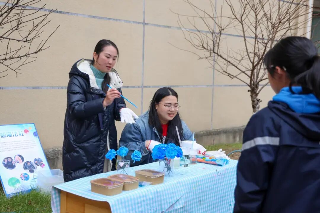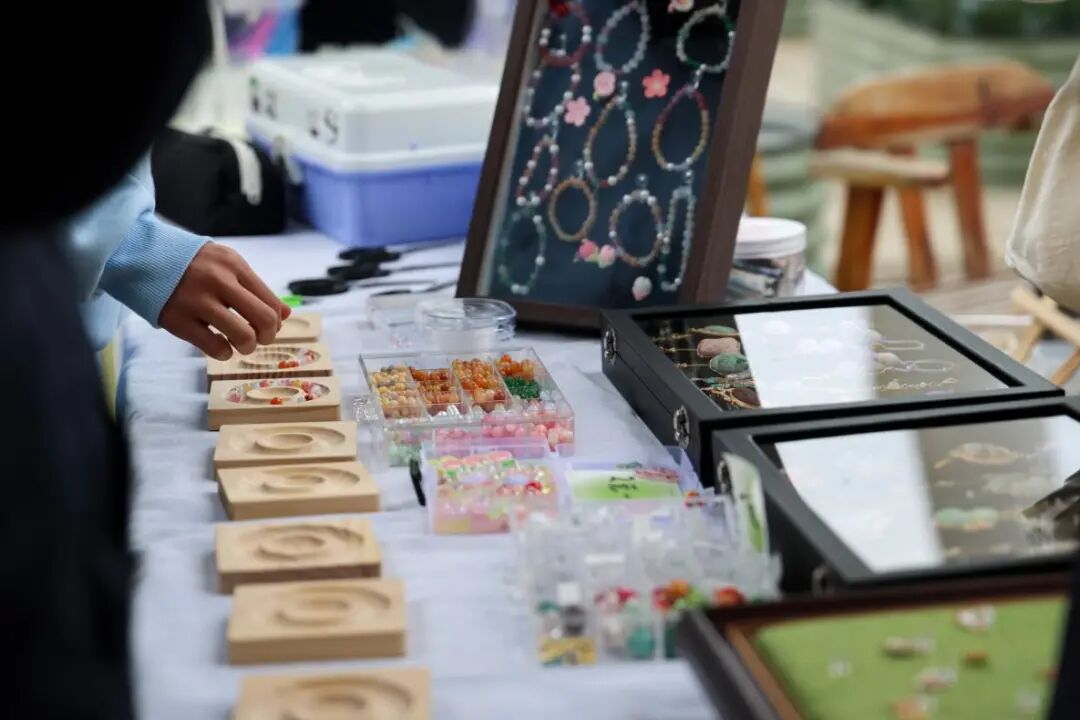 三楼润本农场分会场则藏着自然与心灵相融的静谧雅趣,是美育的另一种打开方式。同学们在此体验泥塑彩绘、手作串珠等项目,用双手赋予材料独特的美感。最具特色的是 “心流社” 的五感疗愈特色体验,通过 “画” 自然之景、“摸” 材质之肌理、“闻” 草木之芬芳、“听” 风声之悠扬、“尝” 原味之纯粹五种形式,帮助学生在与自然的对话中探索内心、寻找自我疗愈,在自然之中感受美、创造美,让艺术浸润心灵。