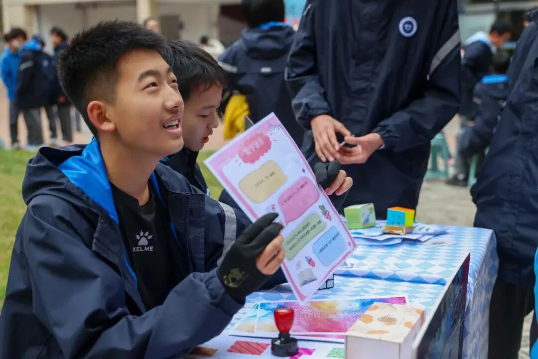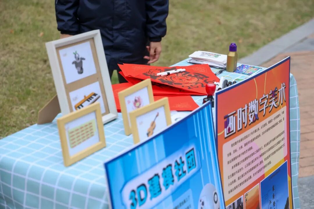 社团课程体验成为当天最具人气的环节,更是美育实践的生动课堂。十几个社团各展其能,将美育巧思融入特色活动:创意手工的奇思妙想,让色彩与造型碰撞出个性之美;非遗传承的匠心独运,让传统技艺承载的文化之美代代相传;科创实践的新奇探索,让科技与艺术交融出理性之美…… 同学们手持集章卡穿梭于各个展位,在互动体验中感受课程之美,在打卡盖章中收藏一份份 “福气” 与美的记忆。