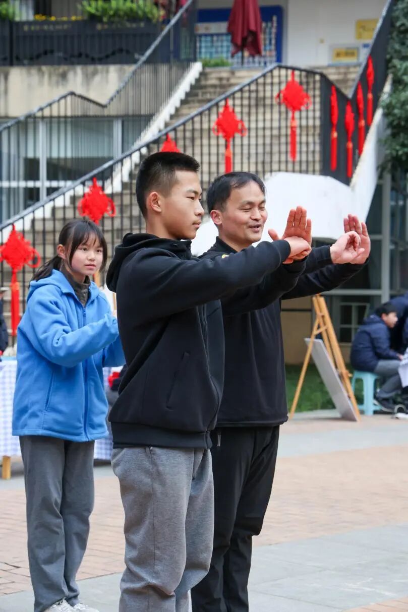 舞台区域的精彩展演,更是美育成果的集中绽放。高铭悦、郭思维、金芯菲、郑嘉怡、巫心宇、王紫钰、许博涛、严丁逸献唱歌曲《我的梦》,悠扬的歌声传递着青春的憧憬,为新年献上最真挚的祝福。武术社团全体同学一展身手,带来的表演《中国功夫》刚柔并济、气势如虹,一招一式间尽显力量与韵律之美,展现了中华传统文化中刚健有为的美学特质。