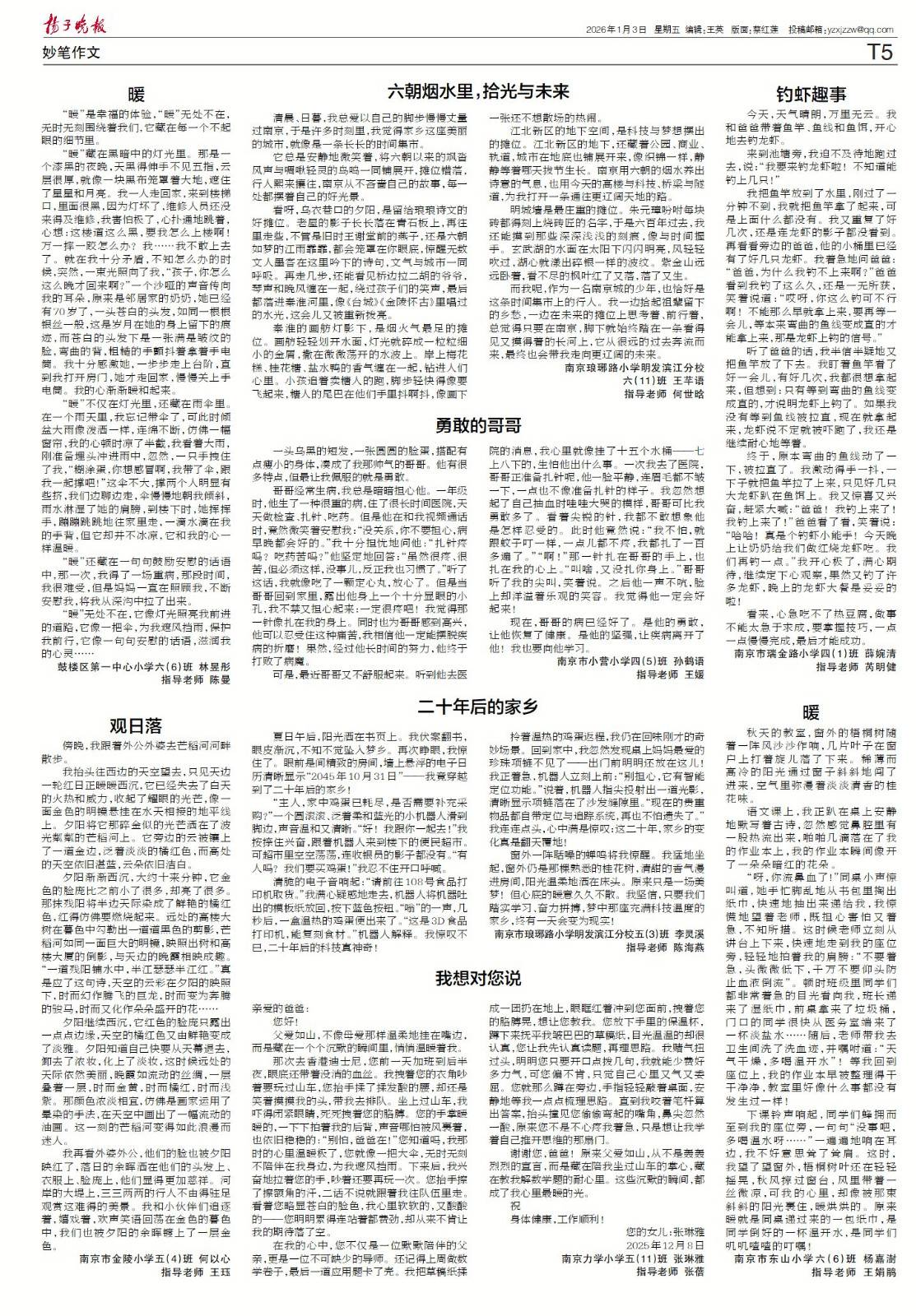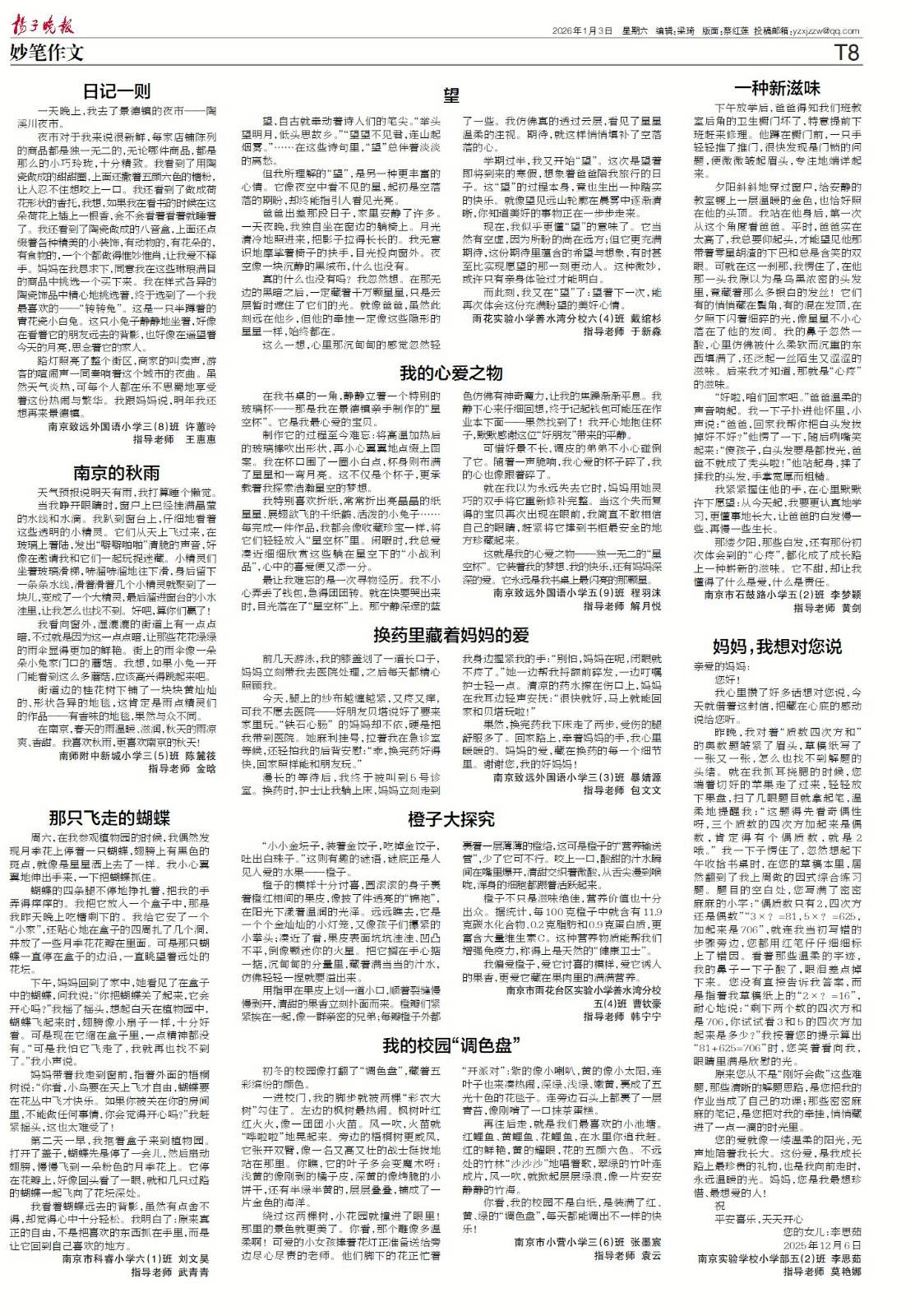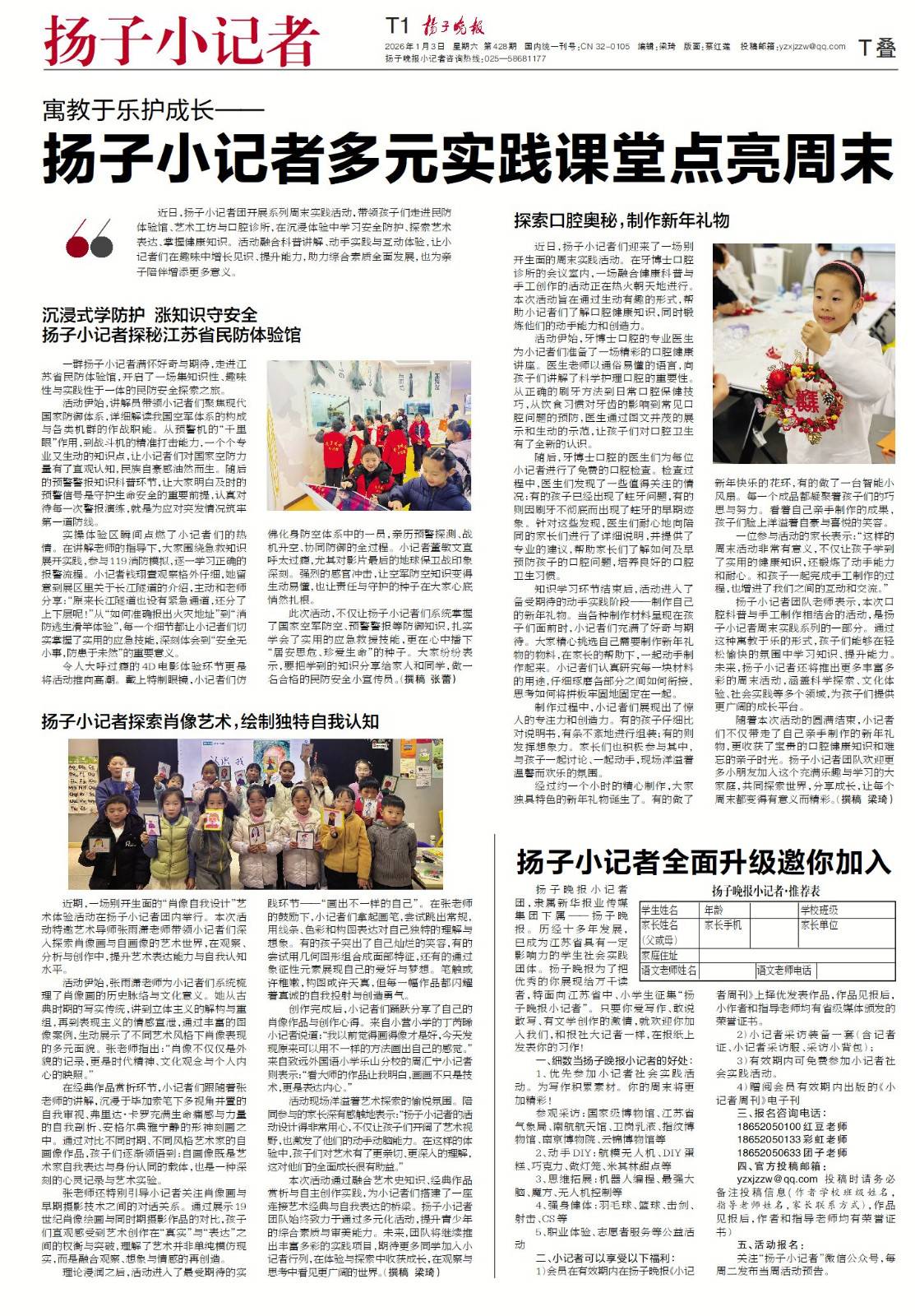 【喜报】2026年1月3日扬子晚报小记者刊登作品