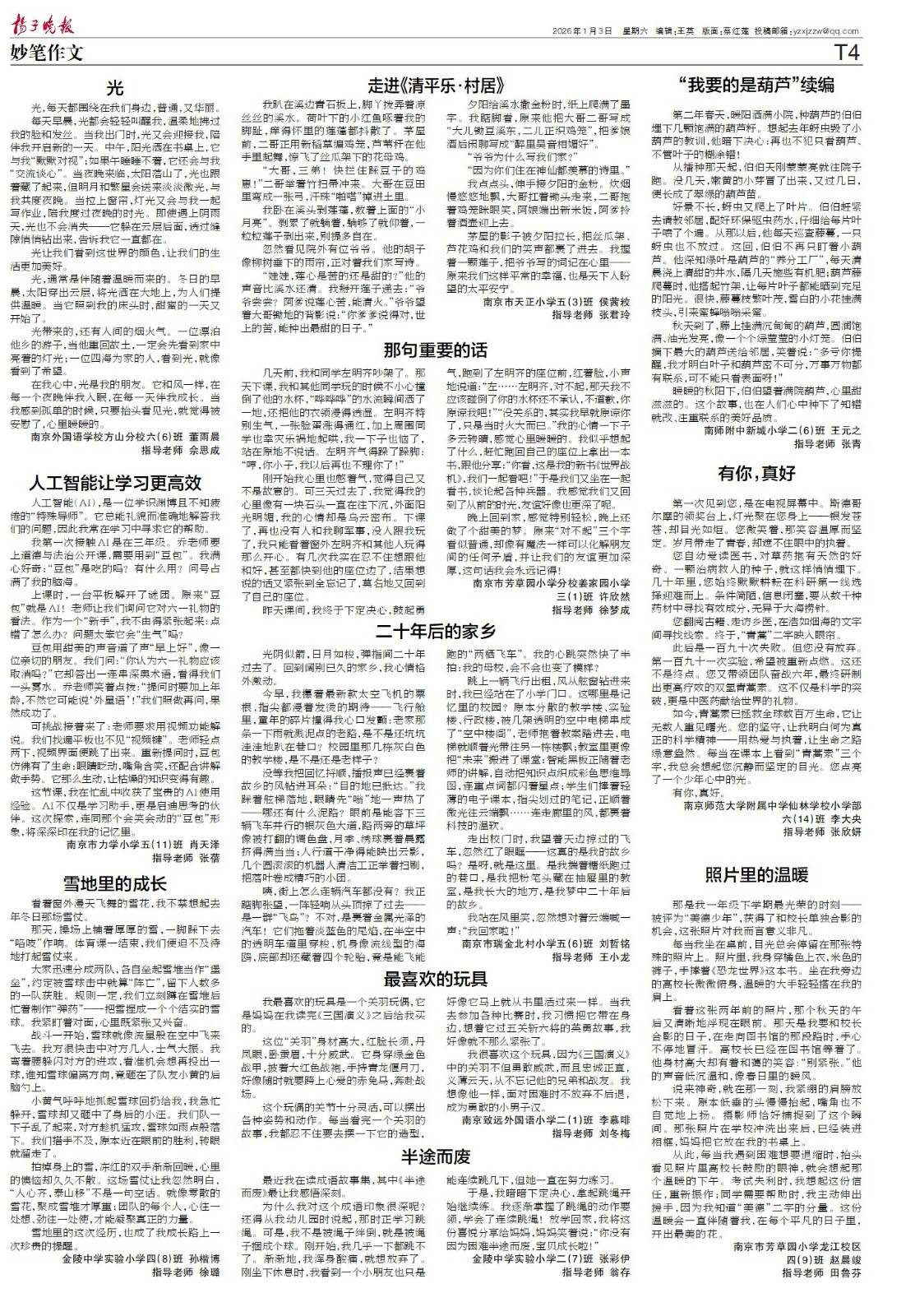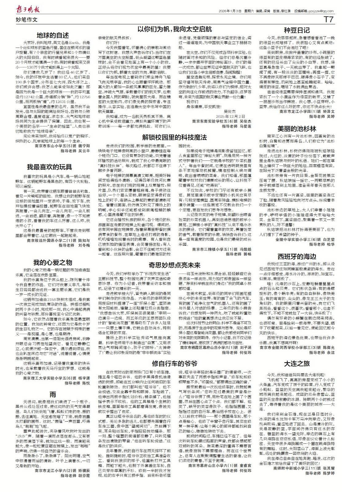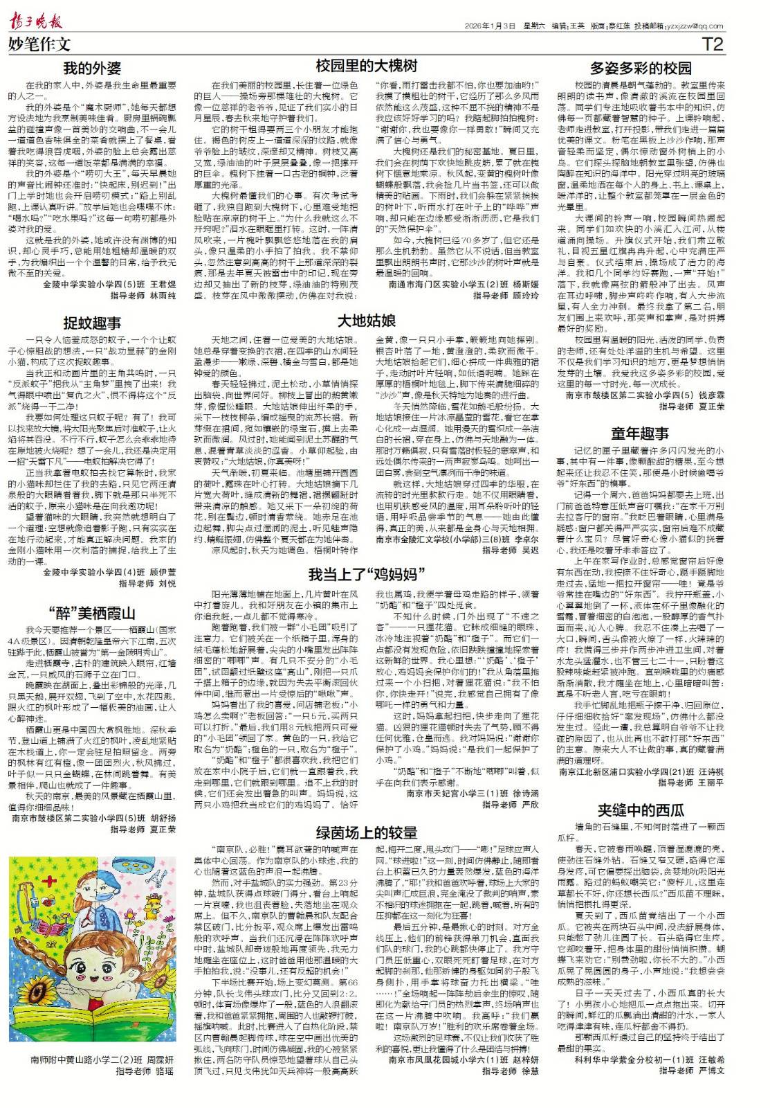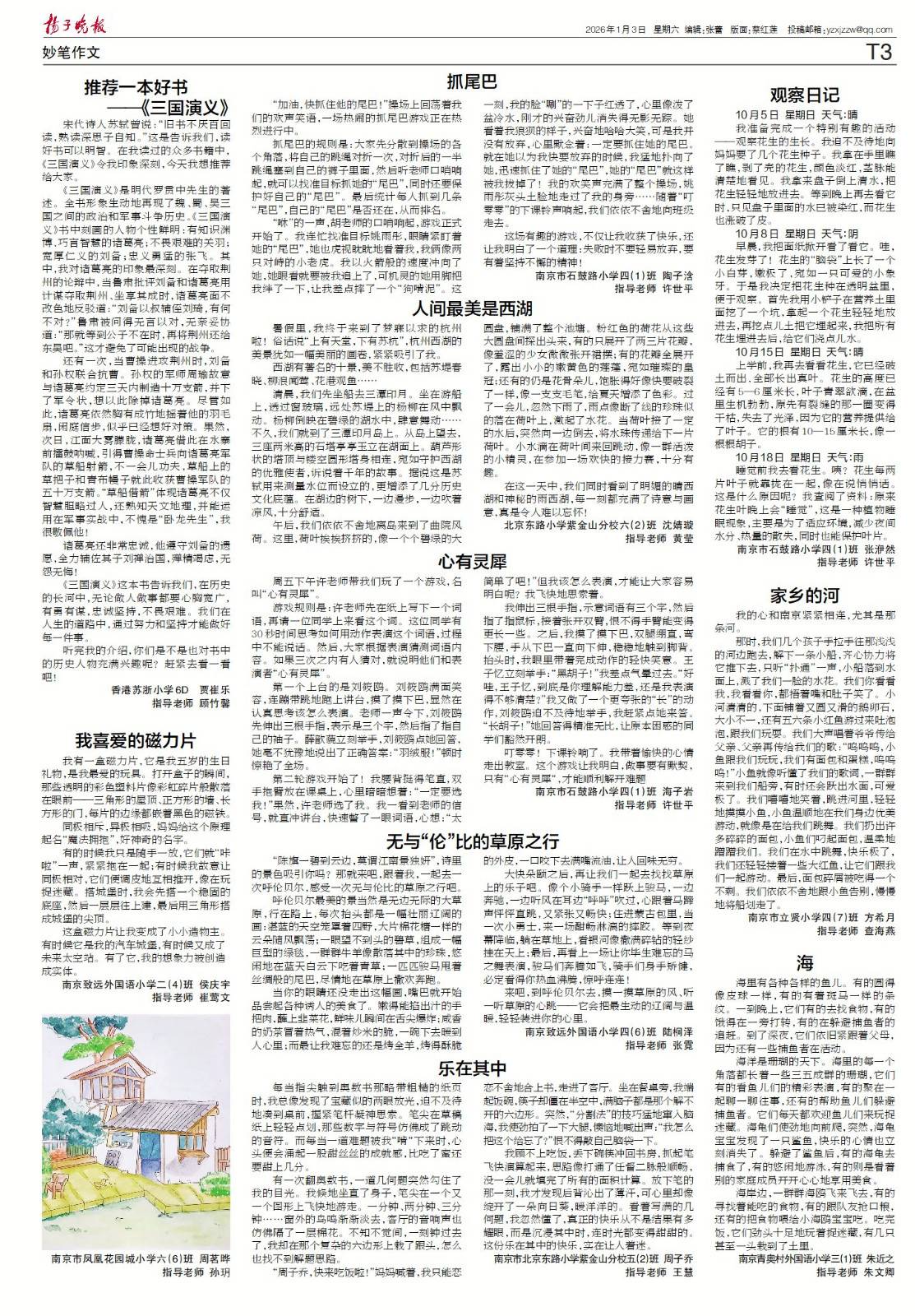 【喜报】2026年1月3日扬子晚报小记者刊登作品