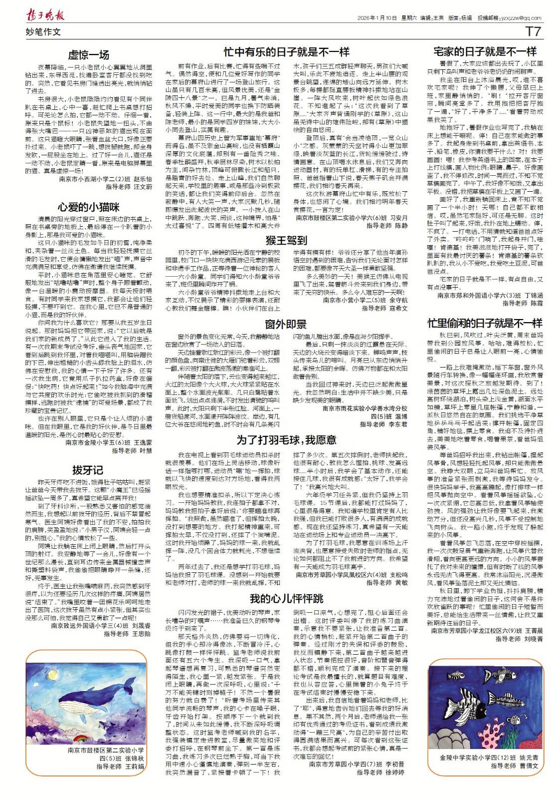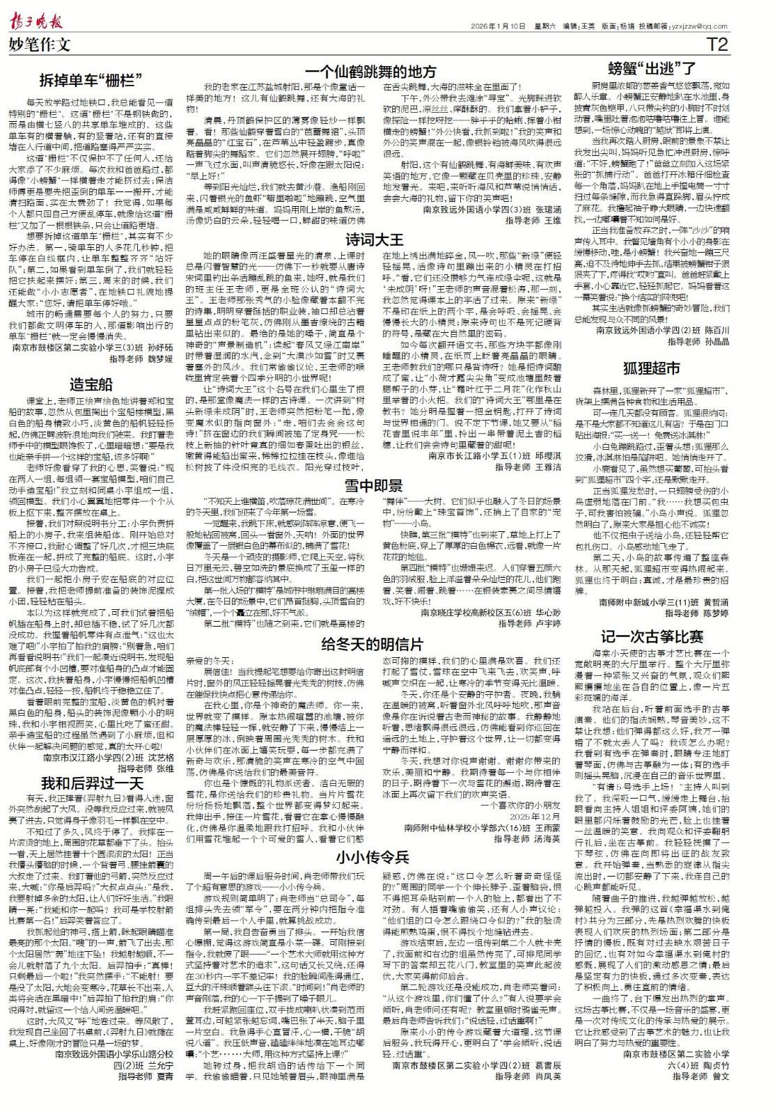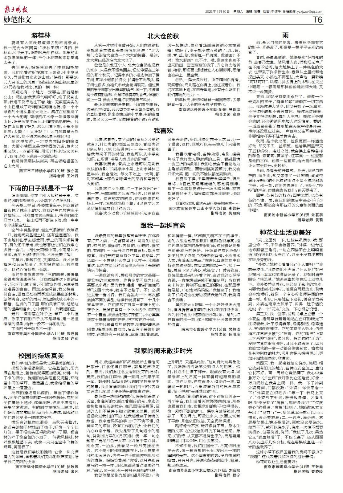 【喜报】2026年1月10日扬子晚报小记者刊登作品